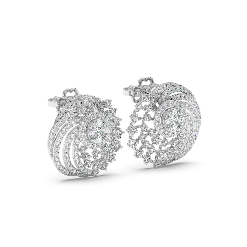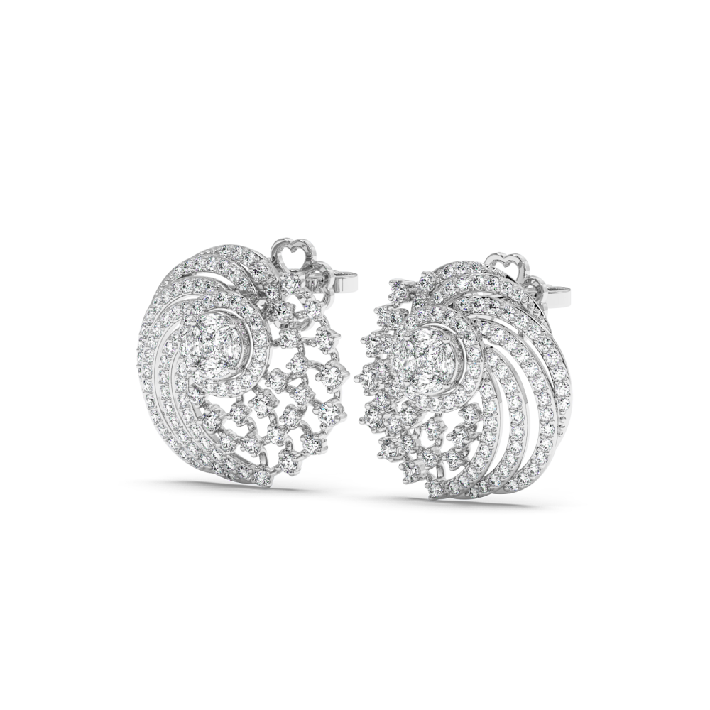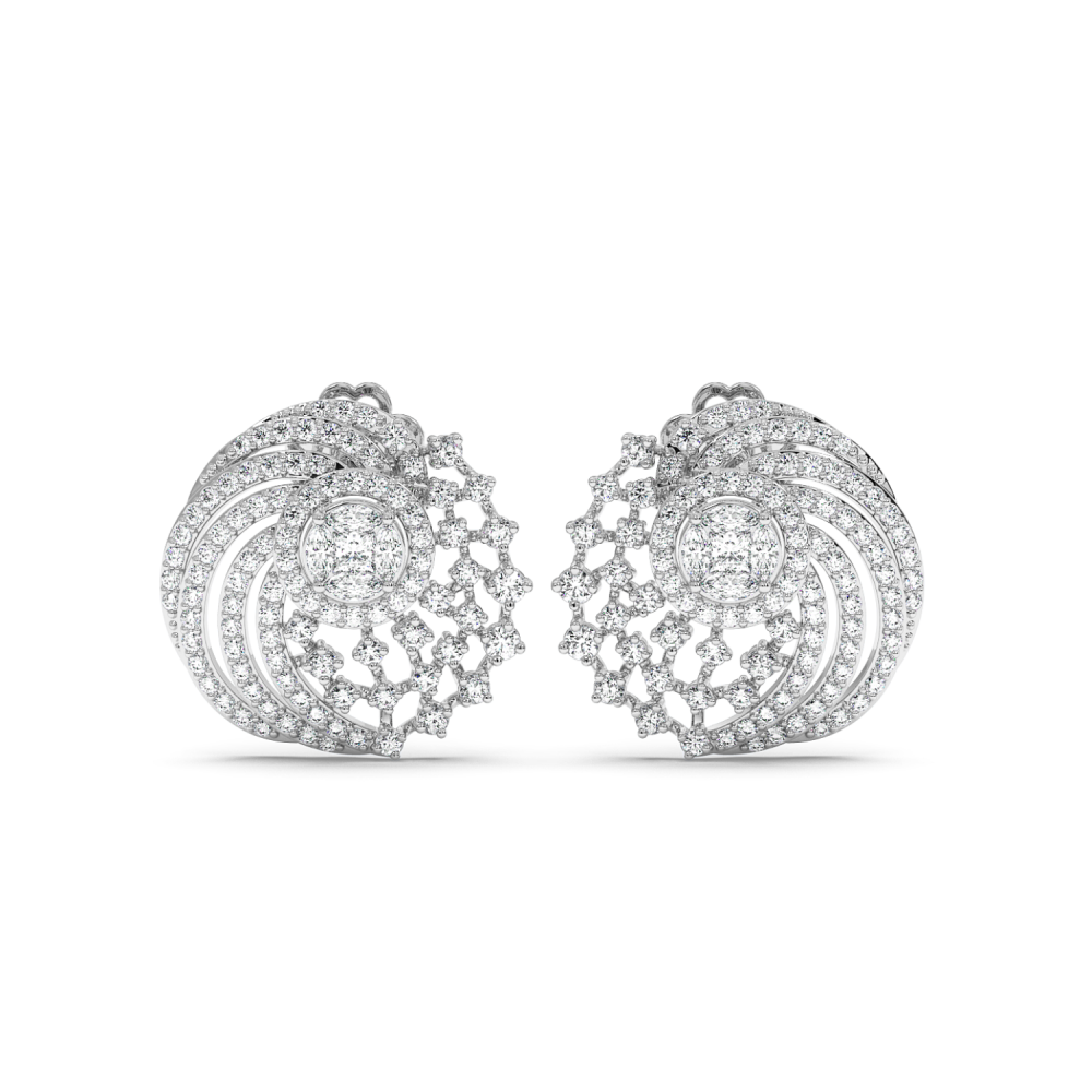 Cercei din aur alb de 14 K, cu Diamante rotunde de 0.90 ct, diamante Princess de 0.07 ct si diamante marquise de 0.20 ct. Greutatea cerceilor este de aproximativ 3.4 grame. Diametrul cerceilor este de 1.5 cm
