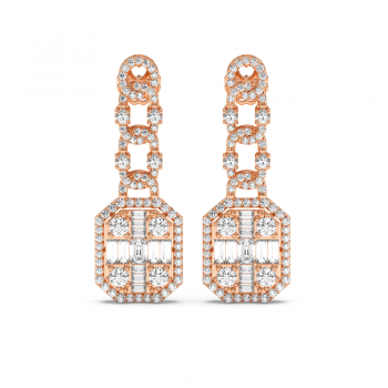 Cercei cu Diamante Rotunde de 1.64ct, Diamante Baget de 0.80ct si Diamante Emerald Cut de 0.40ct