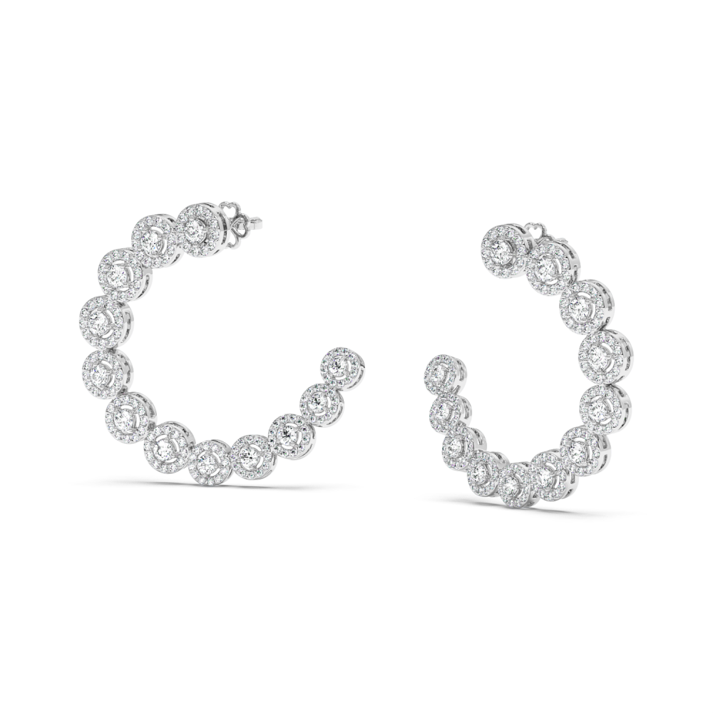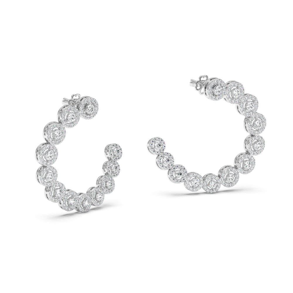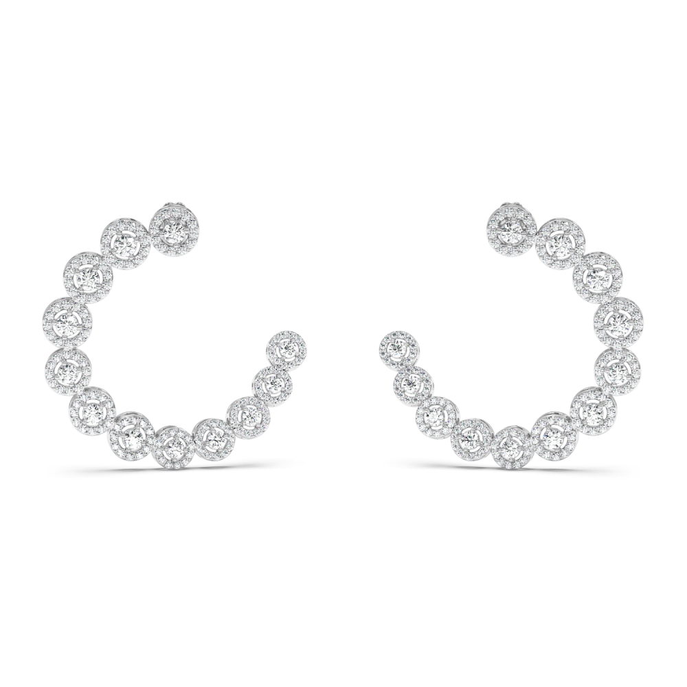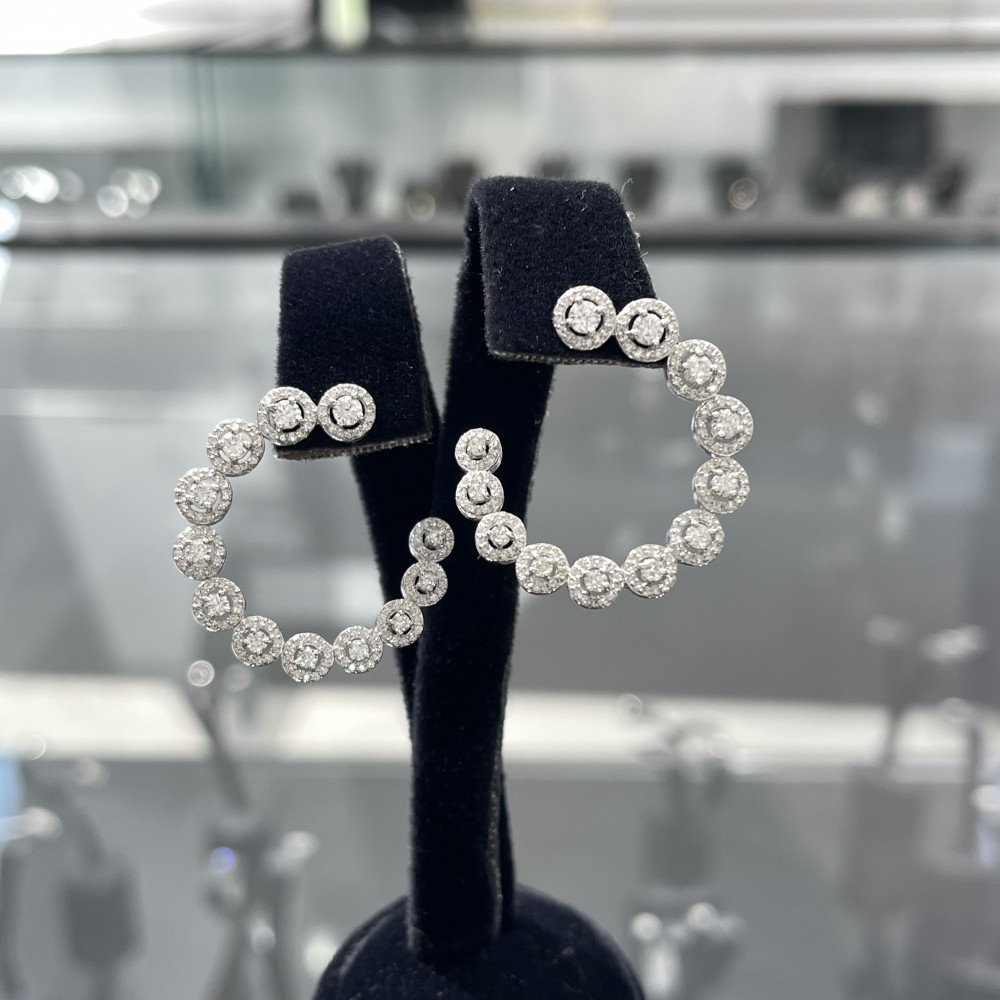 Cercei din aur alb de 18 K, cu diamante rotunde de 2.27 ct. Greutatea cerceilor este de 9.14 grame.