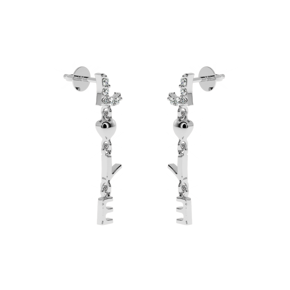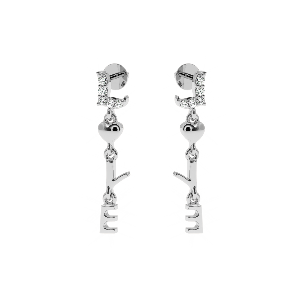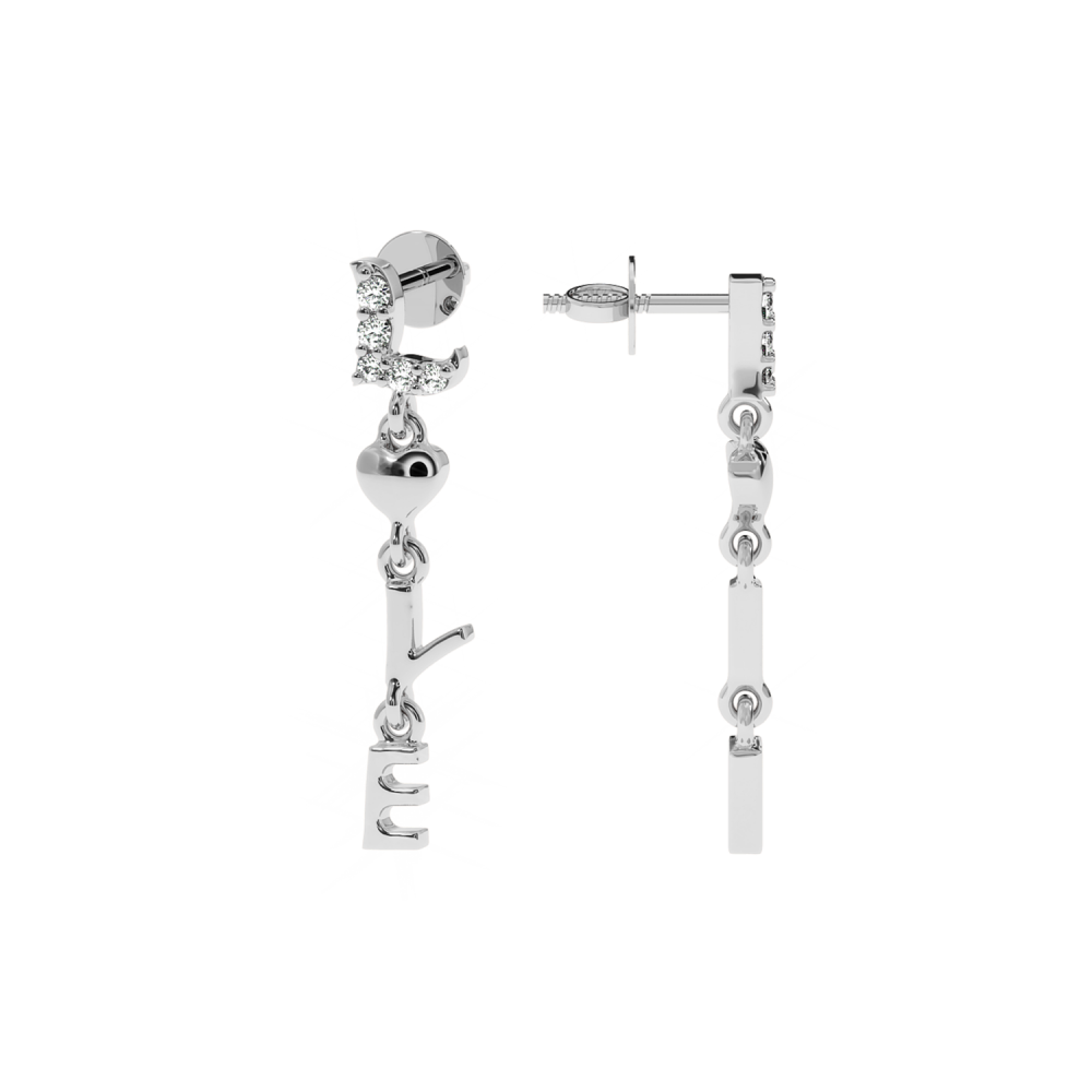 Cercei din aur alb de 14 K, cu diamante de aproximativ 0.06 ct. Greutatea cerceilor este de aproximativ 1.2 grame. Lungimea cerceilor este de aproximativ 2 cm. Accesati "SPECIFICATII" pentru mai multe detalii despre acest produs.