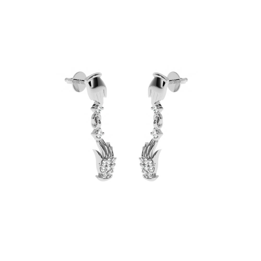 Cercei din aur alb de 14 K, cu diamante de aproximativ 0.12 ct. Greutatea cerceilor este de aproximativ 1 grame. Lungimea cerceilor este de aproximativ 1,8 cm. Accesati "SPECIFICATII" pentru mai multe detalii despre acest produs.