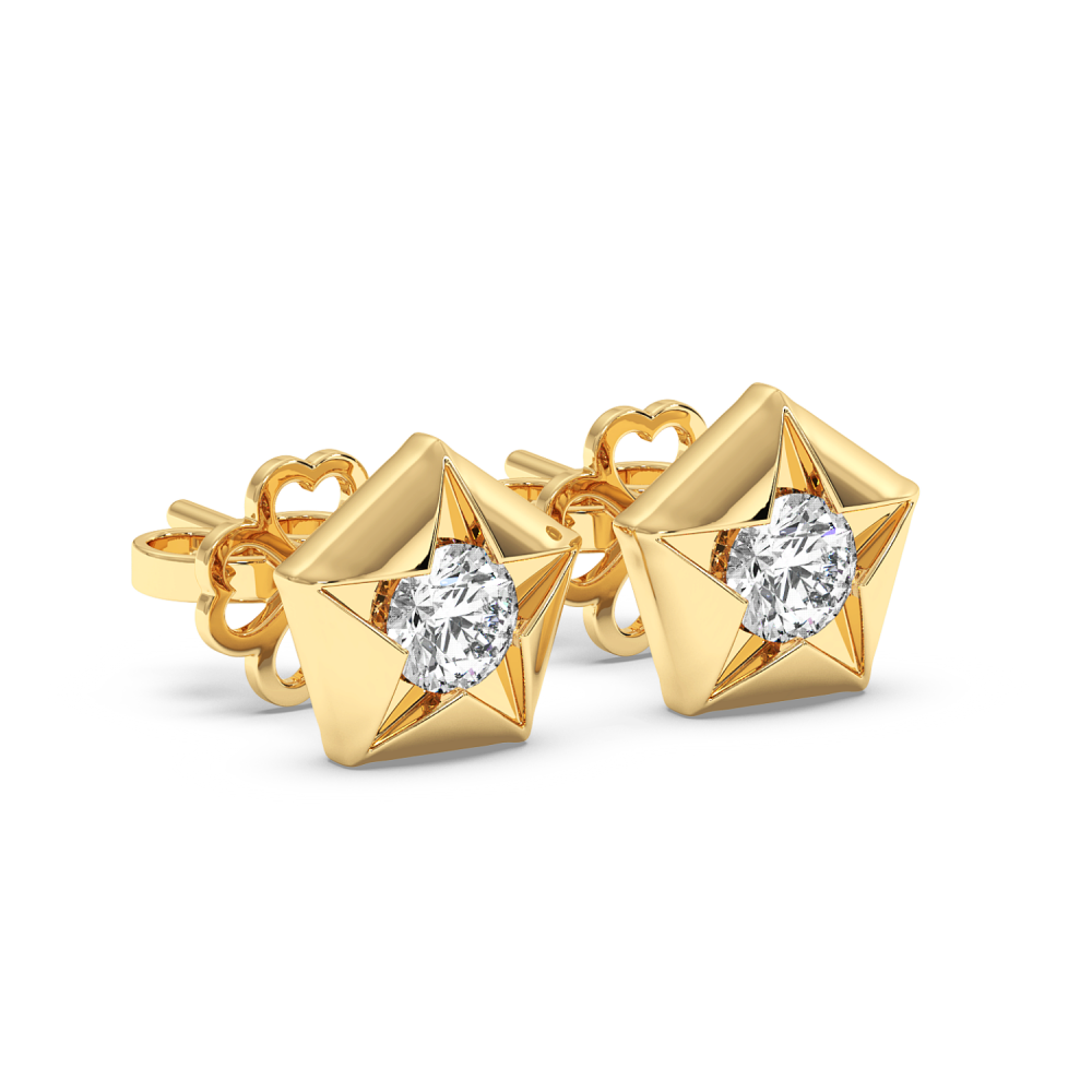 Cercei Octagon din aur de 14 K, cu diamante de 0.19ct. Greutatea cerceilor este de aproximativ 2 grame. Diametrul cerceilor este de aproximativ 7 mm.