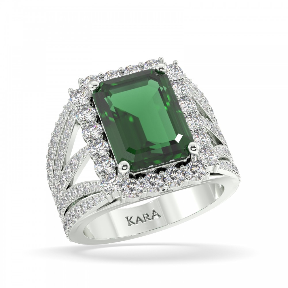 Inel din aur alb de 14k cu Smarald de 6.15 ct si Diamante de 1.80 ct. Greutatea inelului este de 10.48 gr Inelul se poate face pe comanda si din aur de 18K. Putem modifica design-ul in functie de bugetul dumneavoastra. Accesati "SPECIFICATII" pentru mai multe detalii...