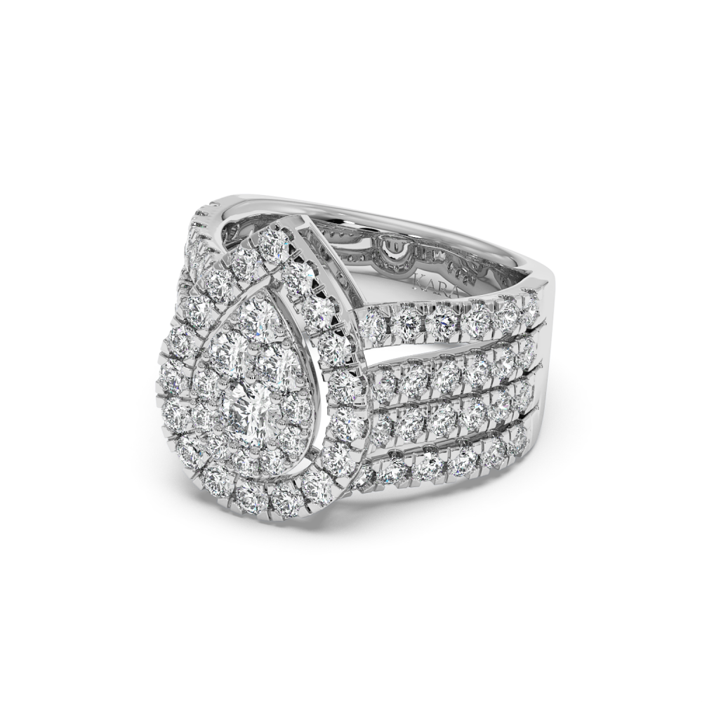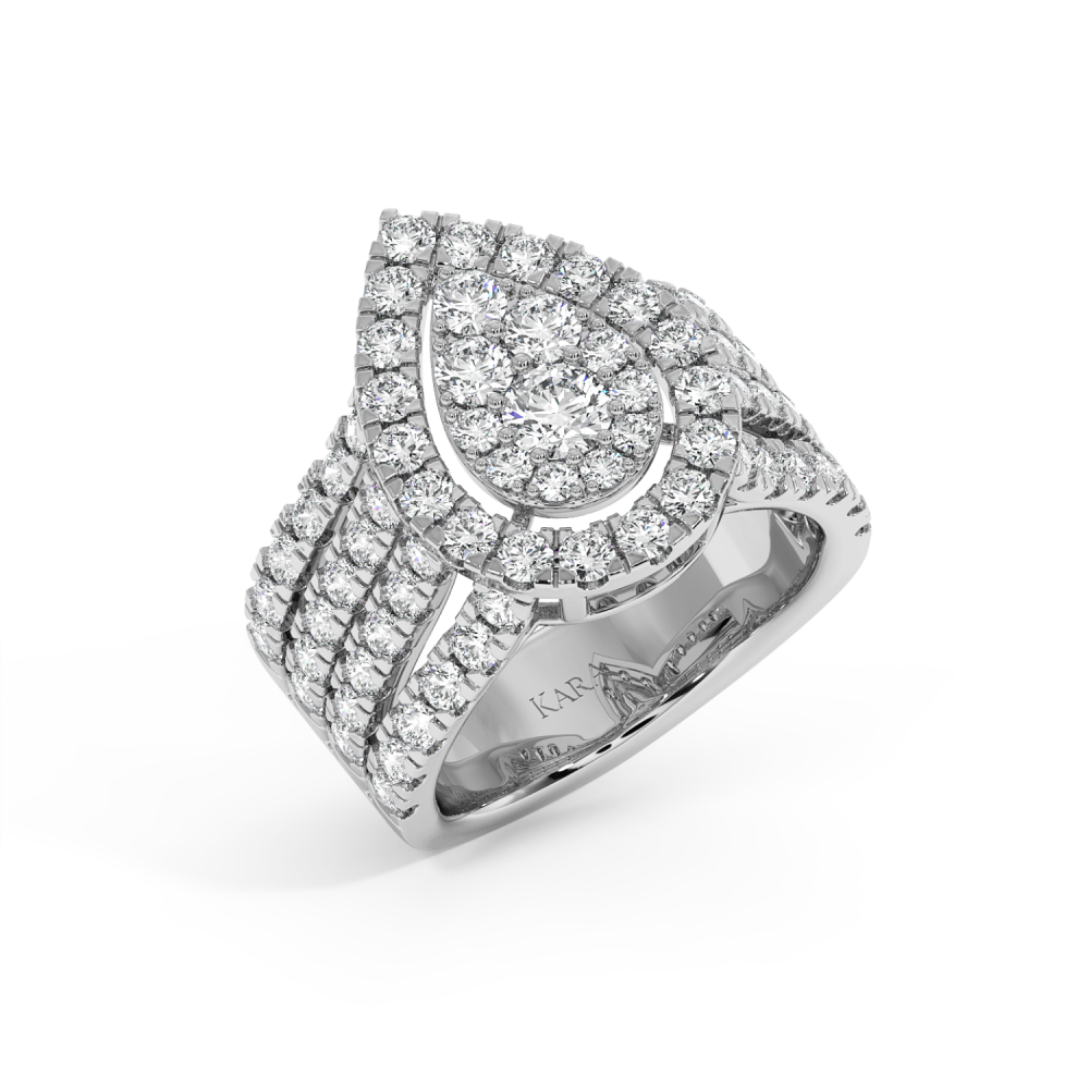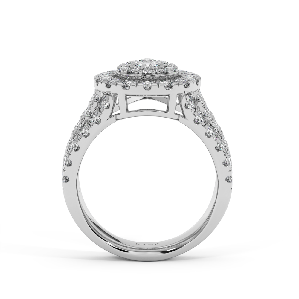 Inel din aur alb de 14 K, cu diamant central de 0.22ct si diamante laterale de 2.06ct. Greutatea inelului este de aproximativ 10 grame.