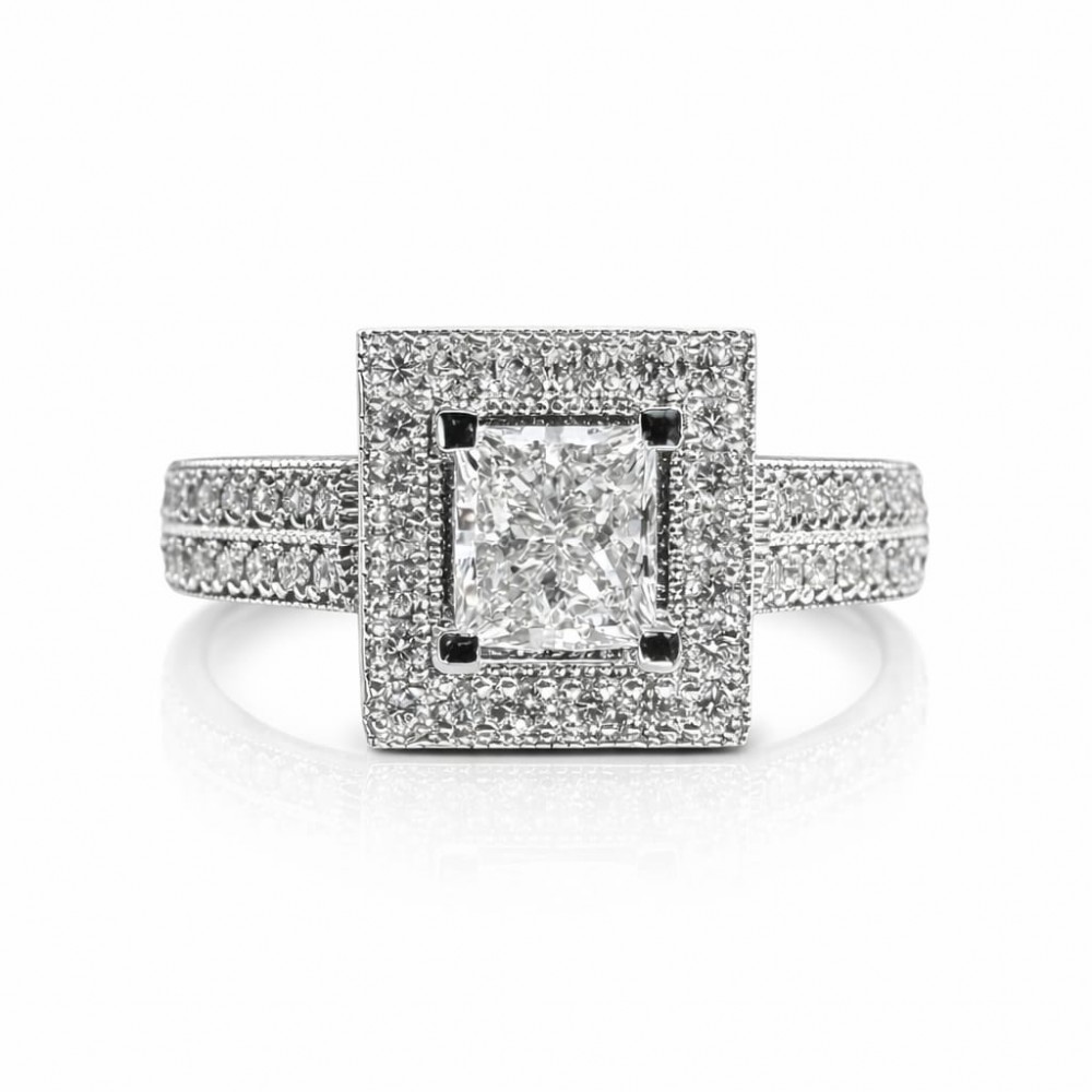 Inel din aur alb de 14K, cu diamant central de 0.90 ct de culoare I si claritate SI1 si diamante laterale de 1.22 ct, culoare G/H si claritate VS/SI. Greutatea inelului este de 7.14 grame. Inelul se poate face pe comanda si din aur de 18K. Putem modifica design-ul in functie de bugetul...