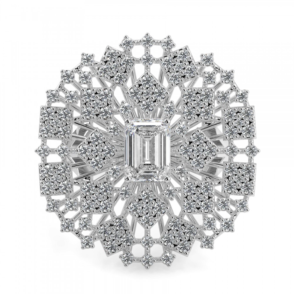 Inel din aur alb de 14 k, cu diamant central de 1.02 ct tip emerald cut si diamante laterale, rotunde de 1.05 ct. Greutatea inelului este de 8.50 grame. Inelul se poate face pe comanda si din aur de 18K. Putem modifica design-ul in functie de bugetul dumneavoastra.