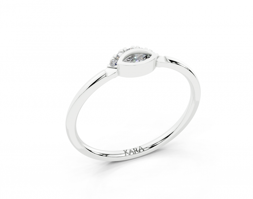 Inel din aur alb de 14K, cu diamant central Marquise Cut de 0.07ct si diamante rotunde de 0.04ct. Greutatea inelului este de 1.66 grame.