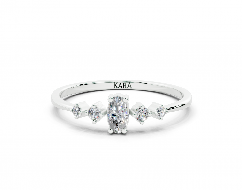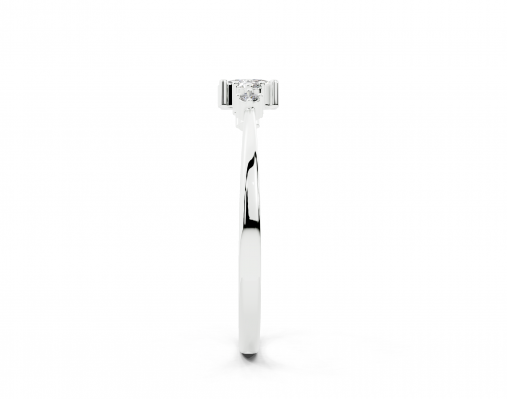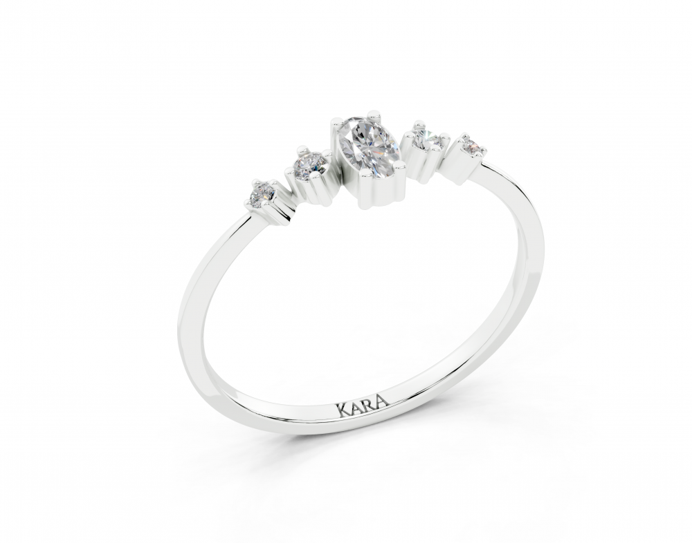 Inel din aur alb de 14K, cu diamant central Oval Cut de 0.11ct si diamante rotunde de 0.05ct. Greutatea inelului este de 1.43 grame.