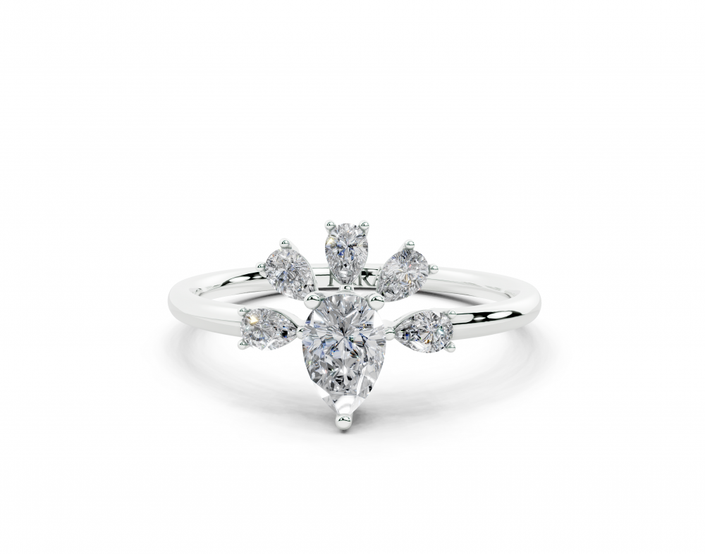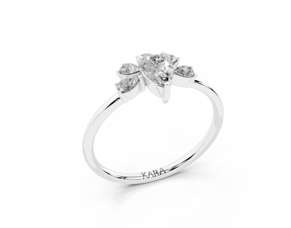 Inel cu diamant central Pear Cut de 0.31ct si diamante Pear Cut laterale de 0.28ct