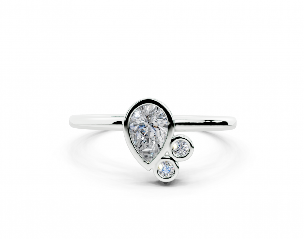 Inel cu diamant central Pear Cut de 0.35ct si diamante rotunde laterale de 0.02ct