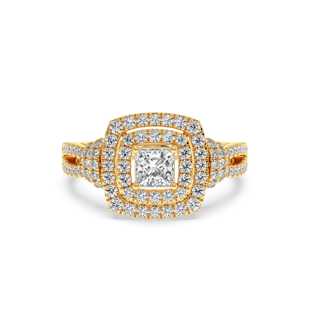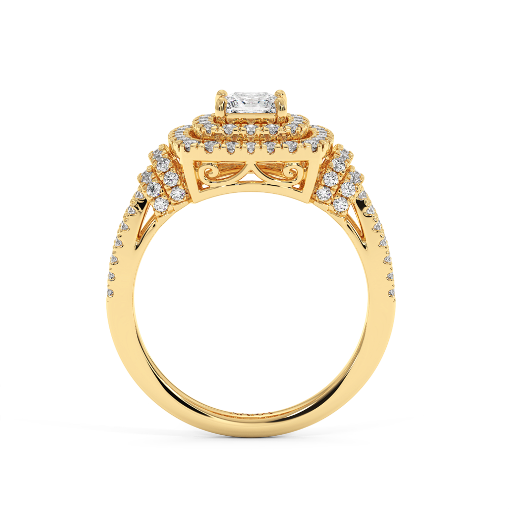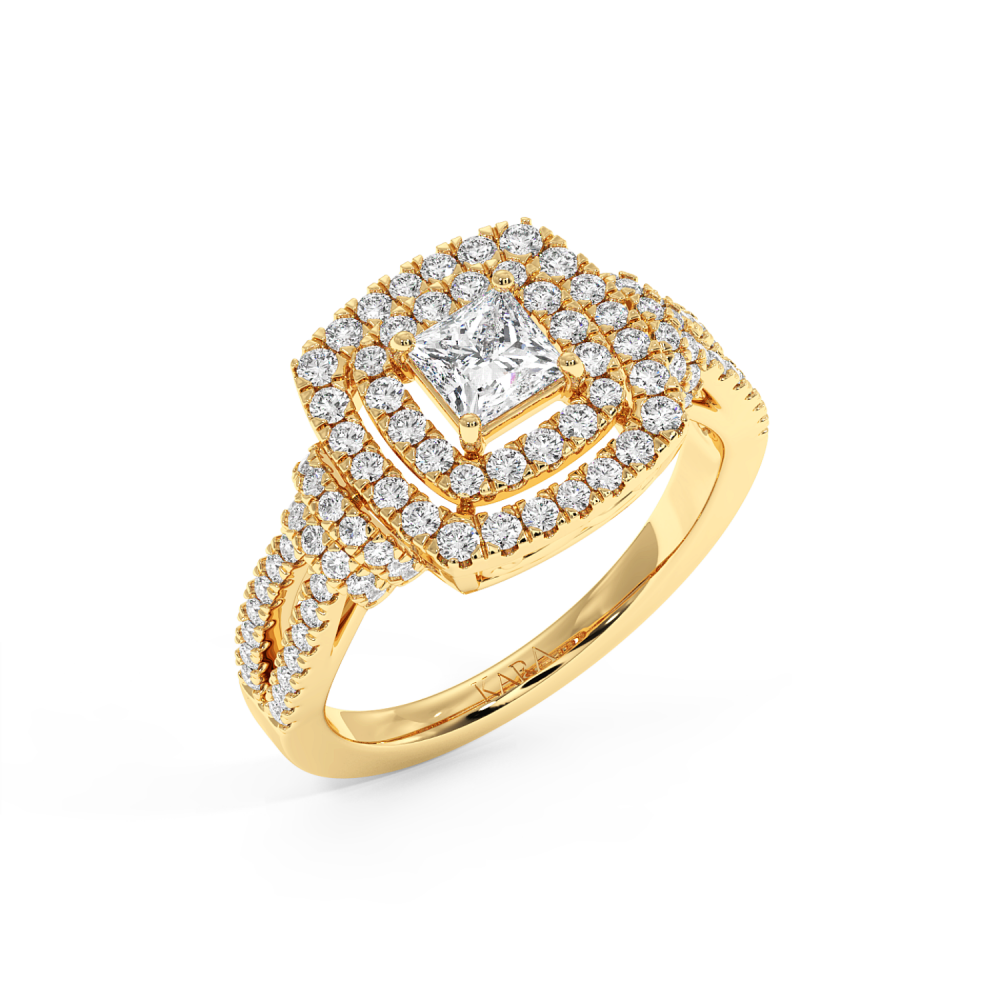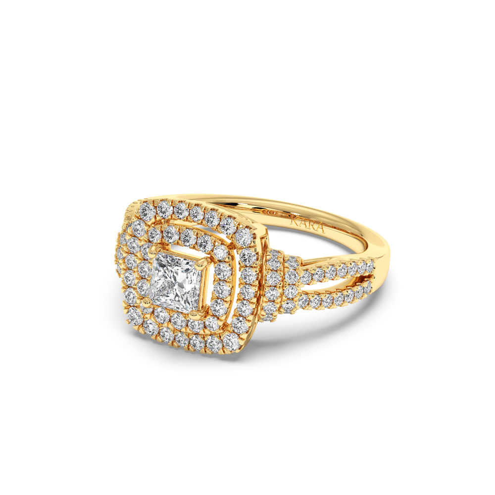 Inel cu Diamant Central Princess Cut de 0.53ct si Diamante Laterale Rotunde de 0.66ct