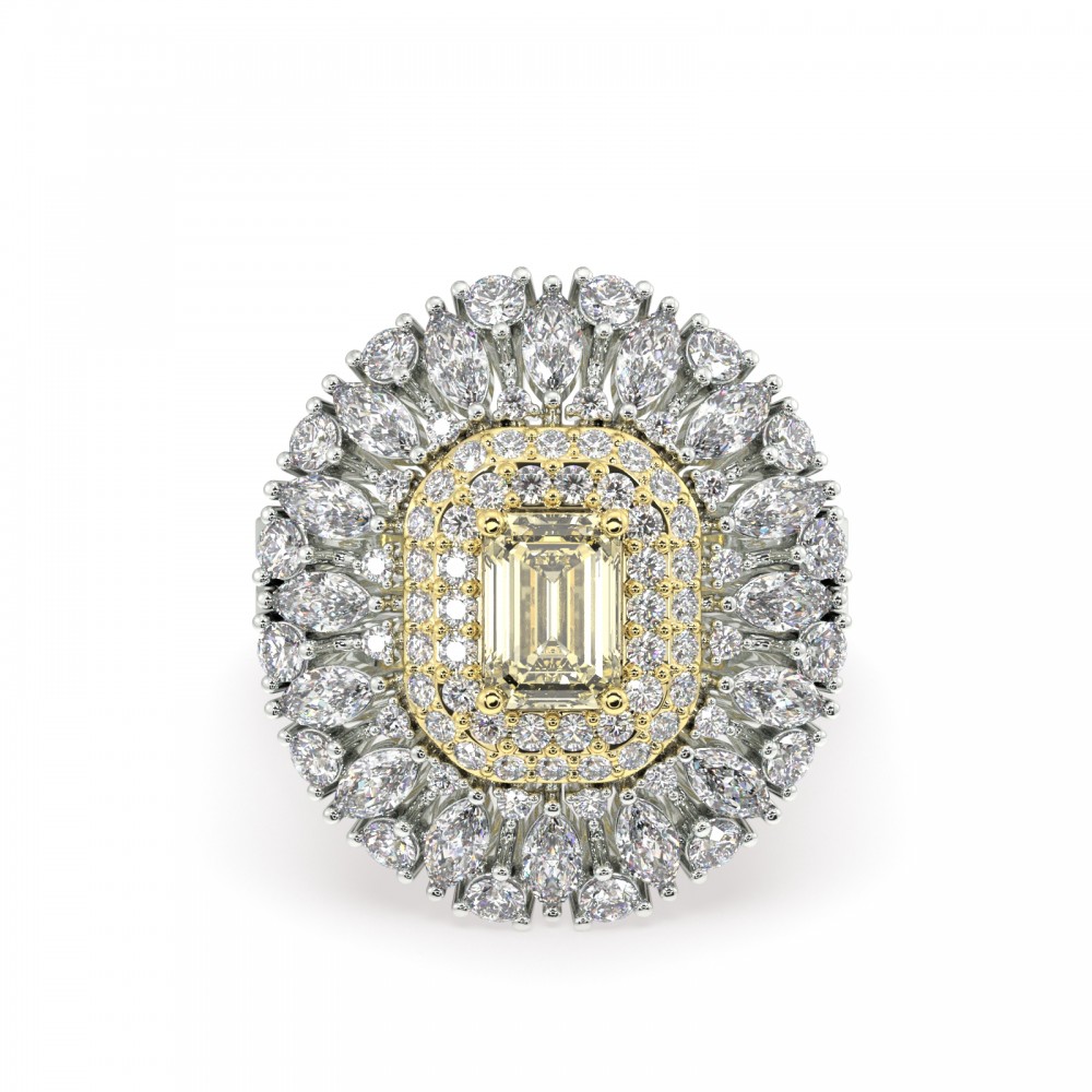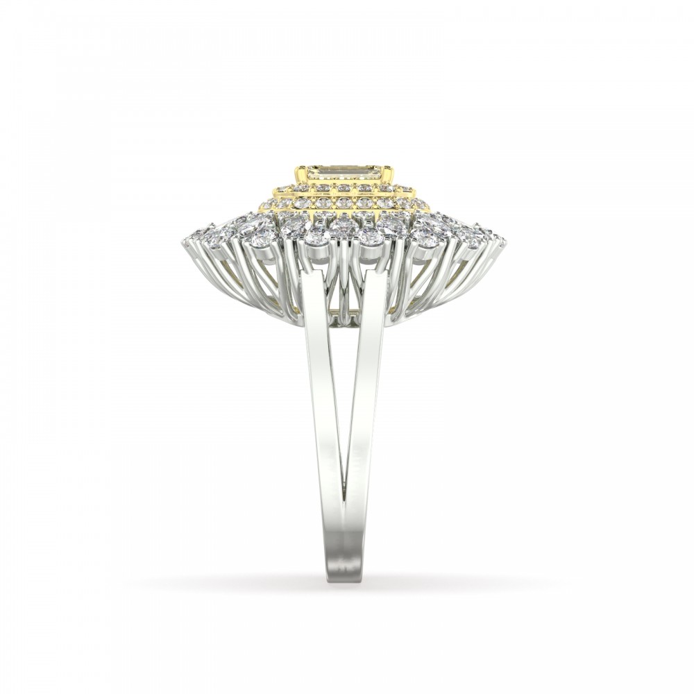 Inel din aur alb de 14K, cu Diamant Fancy de 0.91 ct si Diamante Mix de 2.41 ct. Greutatea inelului este de 8.35 grame.