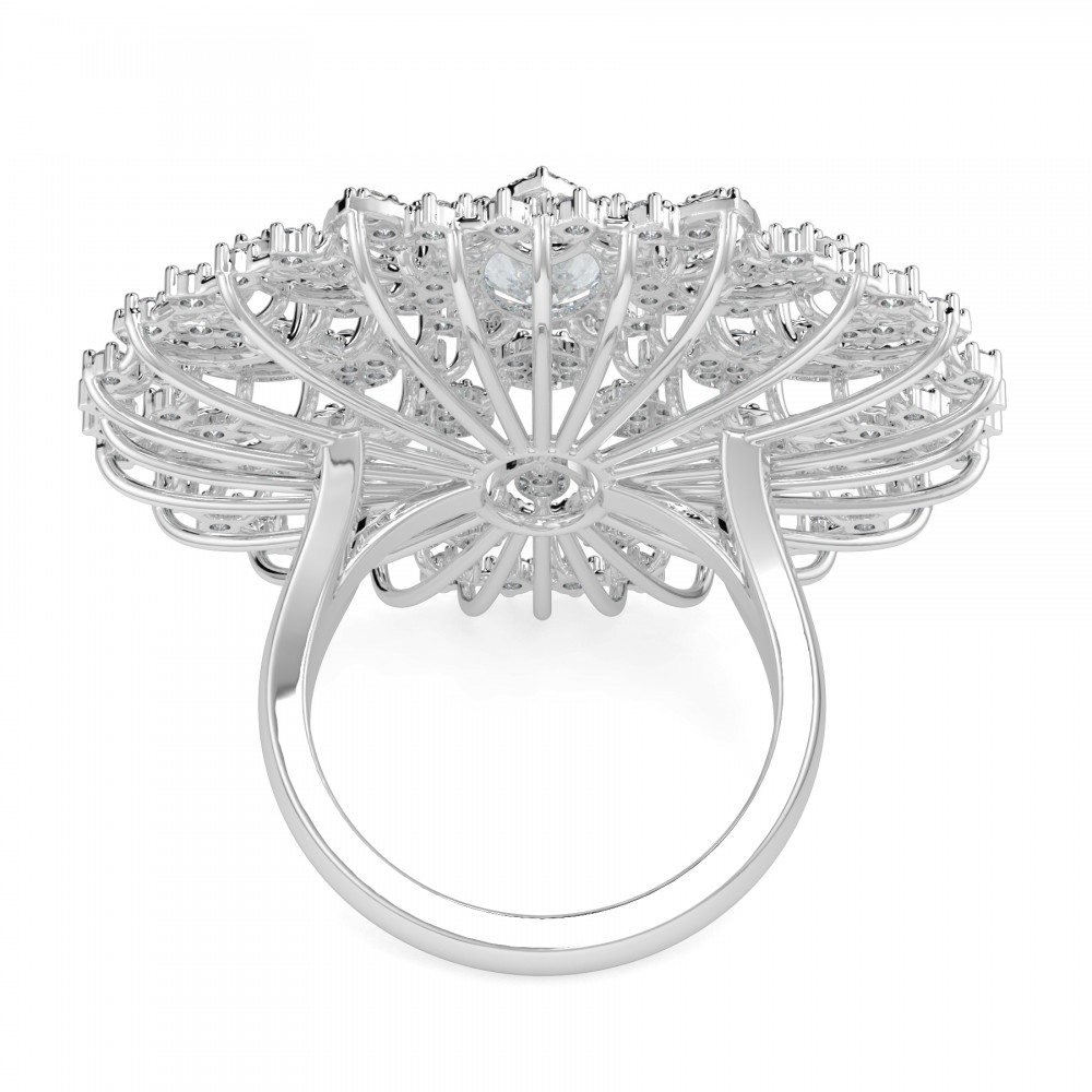 Inel din aur alb de 14 k, cu diamante ovale de 1.03 ct si diamante rotunde de 1.05 ct. Greutatea inelului este de 10.30 grame. Inelul se poate face pe comanda si din aur de 18K. Putem modifica design-ul in functie de bugetul dumneavoastra.