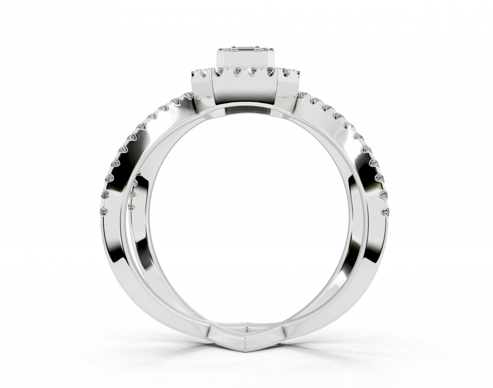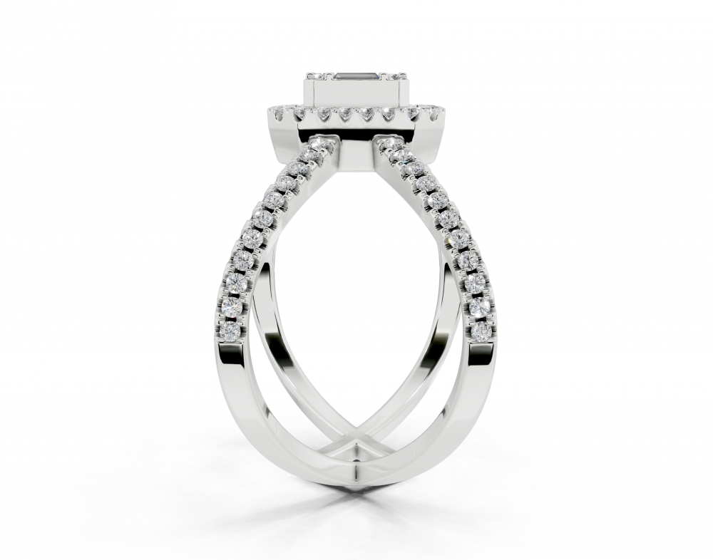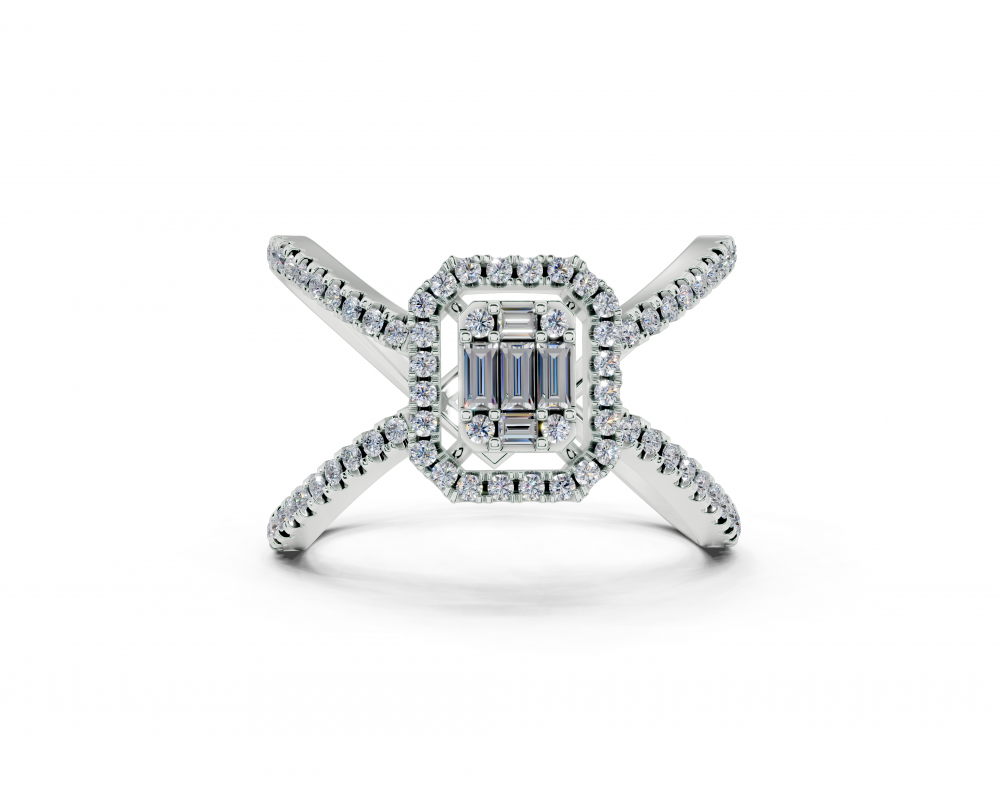 Inel din aur alb de 14K, cu diamante Baget Cut de 0.11ct si diamante rotunde de 0.27ct. Greutatea inelului este de aproximativ 4.00 grame. Inelul se poate face pe comanda si din aur de 18K. Putem modifica design-ul in functie de bugetul dumneavoastra.