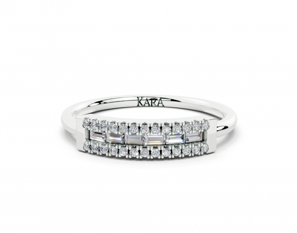 Inel din aur alb de 14K, cu diamante Baget de 0.13ct si diamante rotunde de 0.07ct. Greutatea inelului este de 2.13 grame.