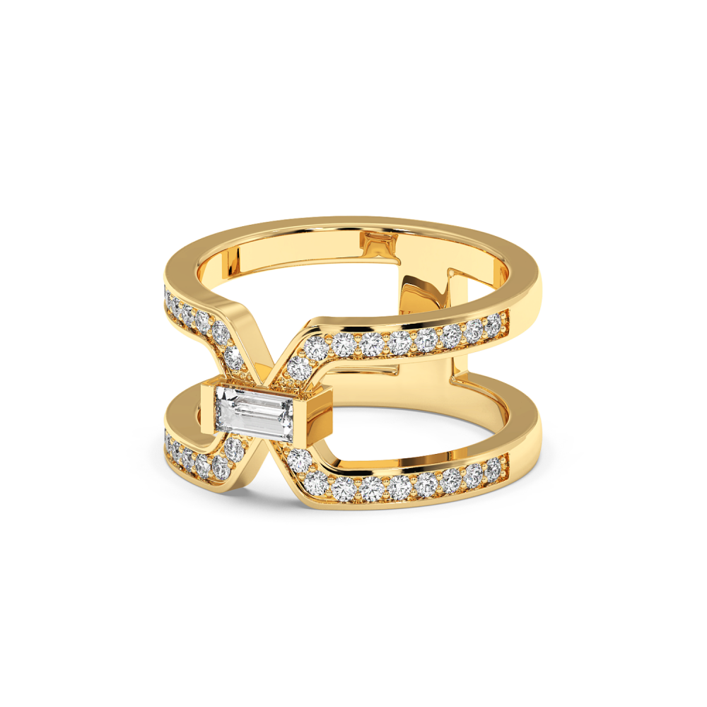 Inel din aur alb de 14K, cu diamante Baget de 0.20ct si diamante rotunde de 0.36ct. Greutatea inelului este de 7.20 grame.