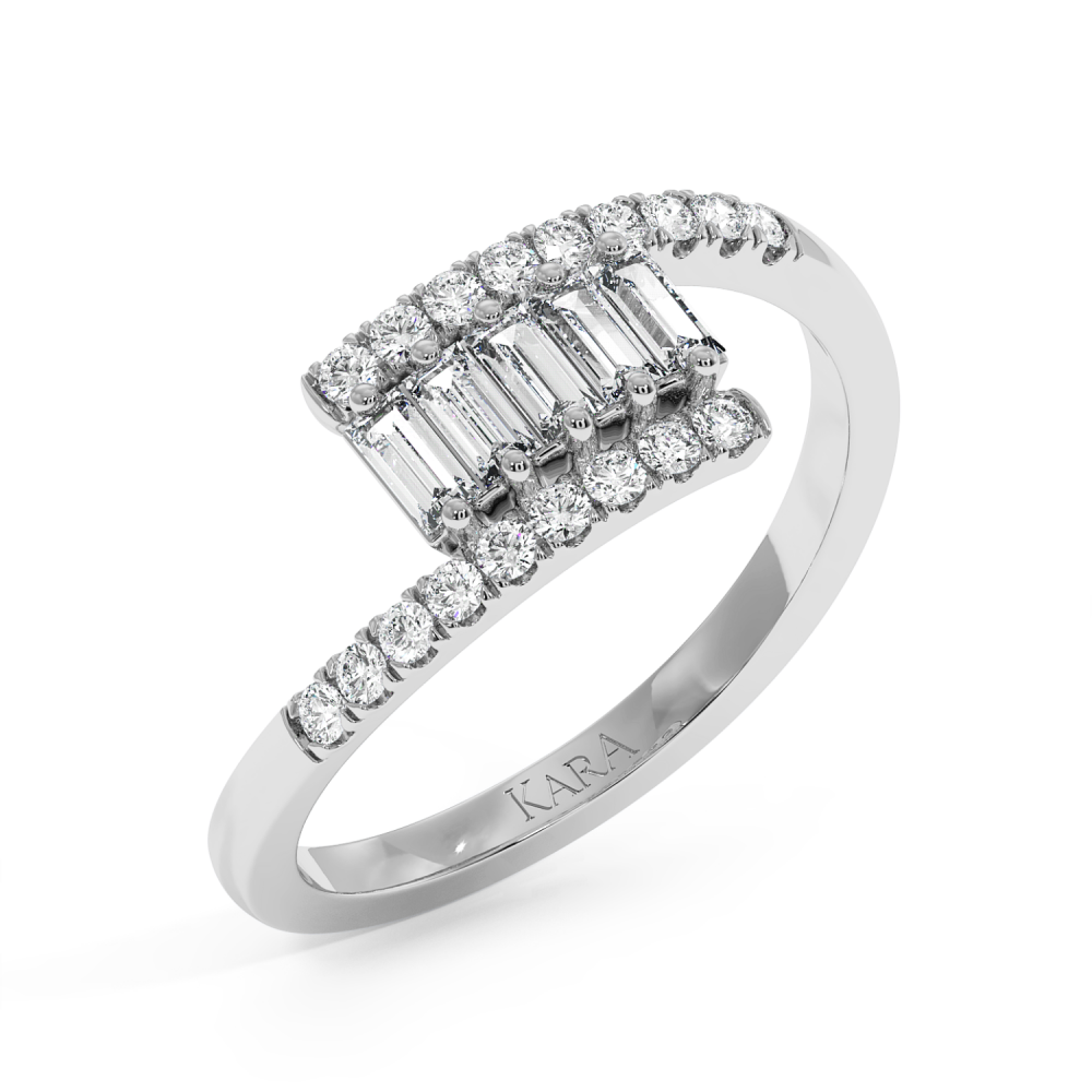 Inel din aur alb de 14K, cu diamante baget de 0.26 ct si diamante rotunde de 0.13 ct. Greutatea inelului este de 1.87 grame. Putem modifica design-ul in functie de bugetul dumneavoastra. Putem alege caracteristicile diamantelor (taietura, culoarea, claritate, carate) pentru a crea inelul cu...