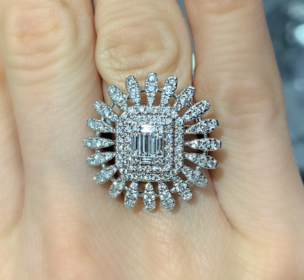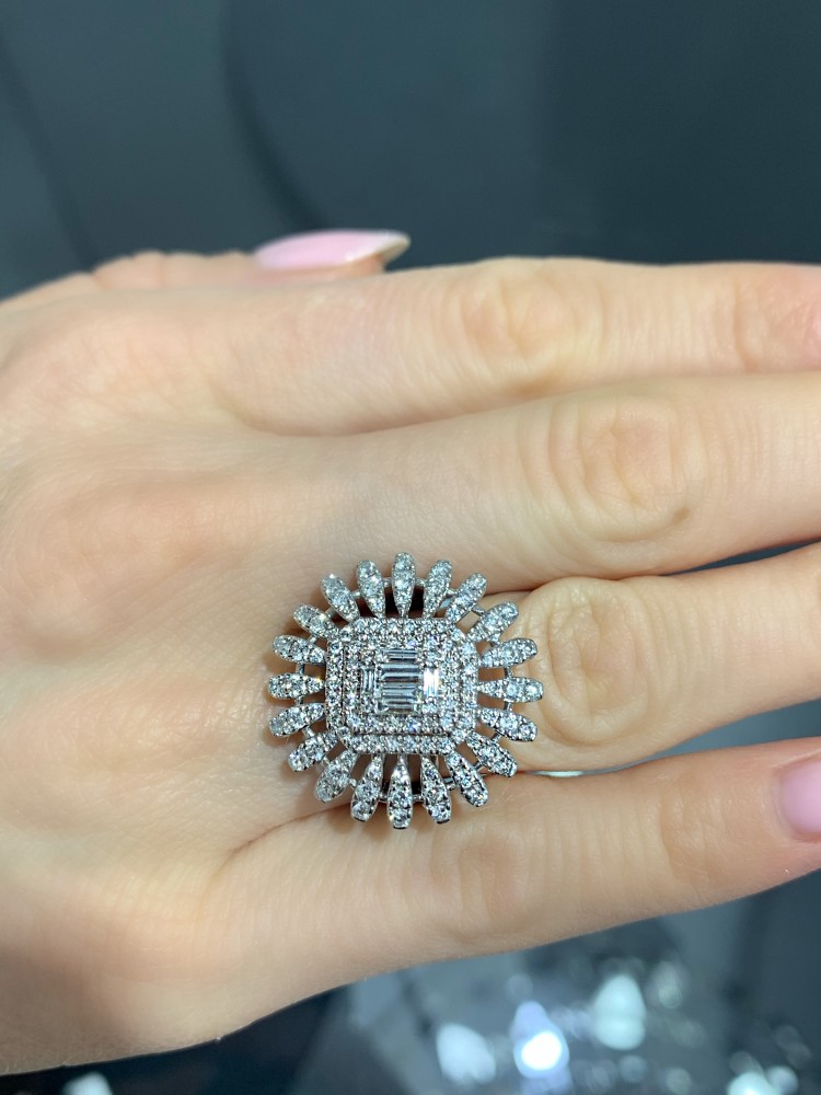 Inel din aur alb de 18K cu diamante Baget de 0.26 ct si diamante rotunde de 1.62 ct. Greutatea inelului este de aproximativ 7.71 grame. Inelul se poate face pe comanda si din aur de 14K. Putem modifica design-ul in functie de bugetul dumneavoastra. Putem alege caracteristicile...