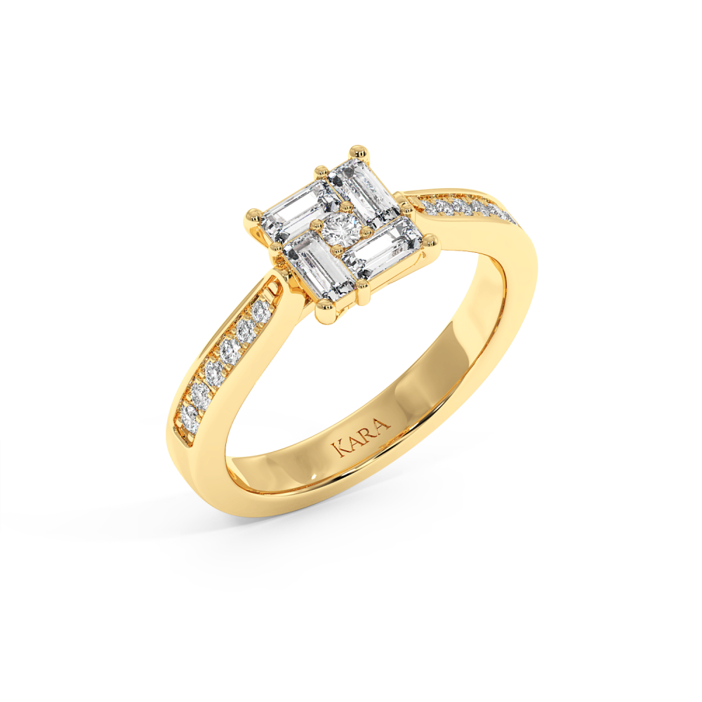 Inel din aur de 14K cu diamante baget de 0.43ct si diamante rotunde de 0.17ct. Greutatea inelului este de aproximativ 2.50 grame. Inelul se poate face pe comanda si din aur de 18K. Putem modifica design-ul in functie de bugetul dumneavoastra. Putem alege caracteristicile diamantelor...
