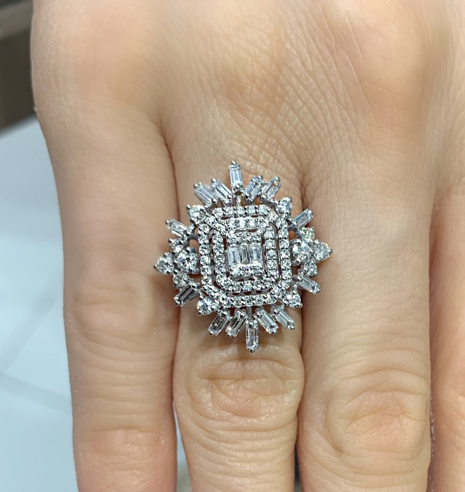 Inel din aur alb de 14K cu diamante Bagheta de 0.58ct si diamante Round de 0.71 ct. Greutatea inelului este de aproximativ 4.80 grame. Inelul se poate face pe comanda si din aur de 18K. Putem modifica design-ul in functie de bugetul dumneavoastra. Putem alege caracteristicile...