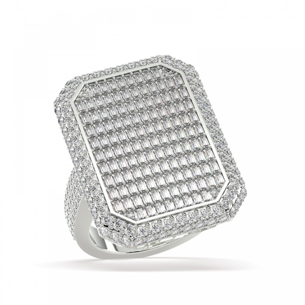 Inel cu diamante din aur alb de 18K, cu diamante baget de 1.98ct si diamante rotunde de 1.11ct. Greutatea inelului este de 9.49 grame. Inelul se poate face pe comanda si din aur de 14K. Putem modifica design-ul in functie de bugetul dumneavoastra. Putem alege caracteristicile...