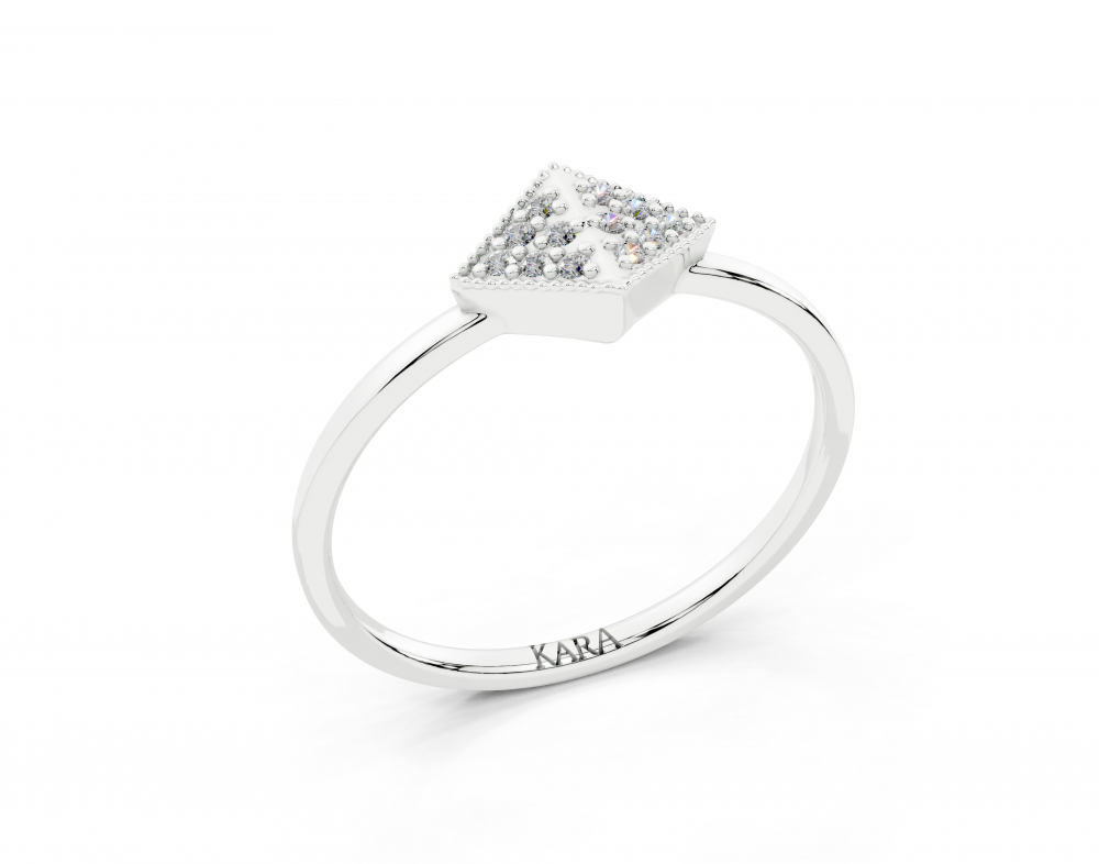 Inel din aur alb de 14K, cu diamante rotunde de 0.04ct. Greutatea inelului este de 2.06 grame.