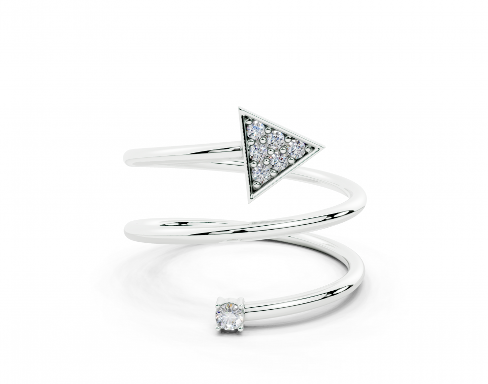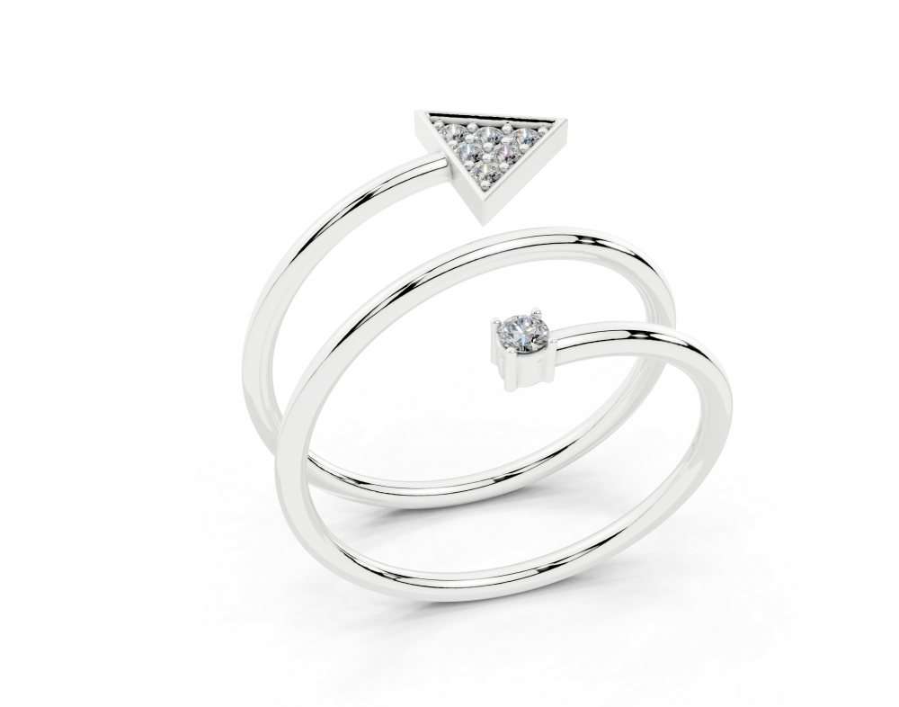 Inel din aur alb de 14K, cu diamante rotunde de 0.09ct. Greutatea inelului este de 3.5 grame.
