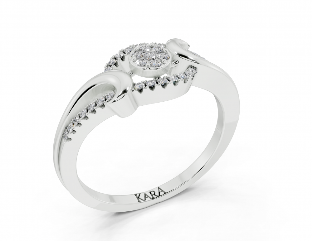 Inel din aur alb de 14K, cu diamante rotunde de 0.11ct. Greutatea inelului este de aproximativ 2.50 grame.