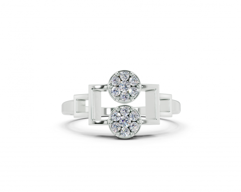 Inel din aur alb de 14K, cu diamante rotunde de 0.14ct. Greutatea inelului este de aproximativ 2.30 grame.