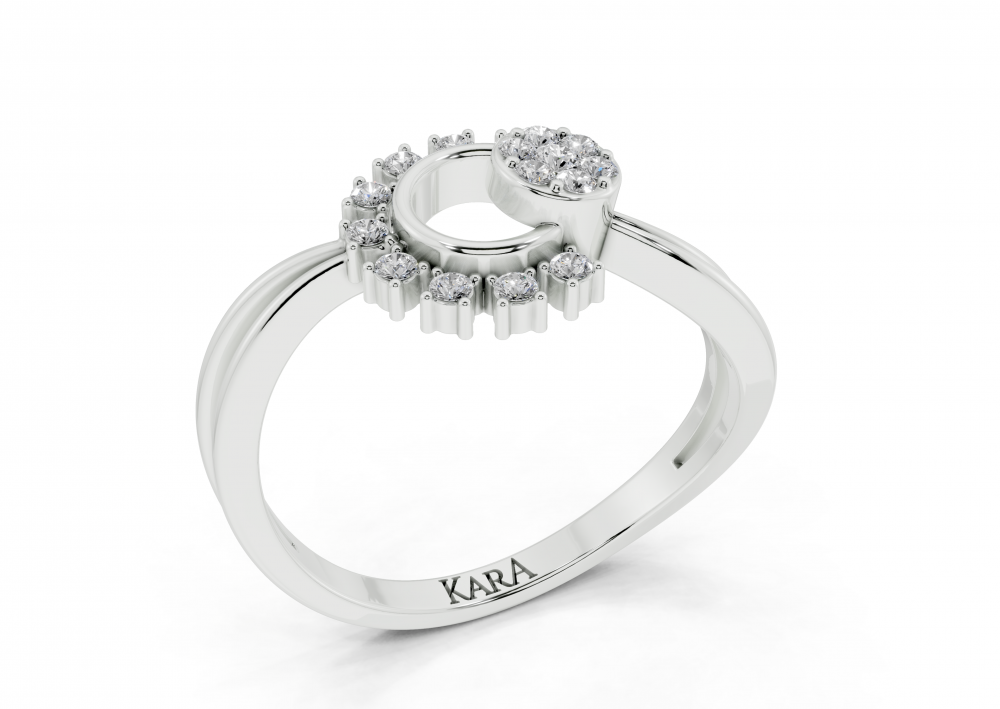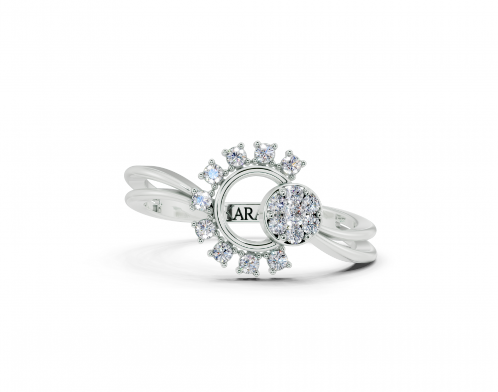 Inel din aur alb de 14K, cu diamante rotunde de 0.14ct. Greutatea inelului este de aproximativ 2.50 grame.
