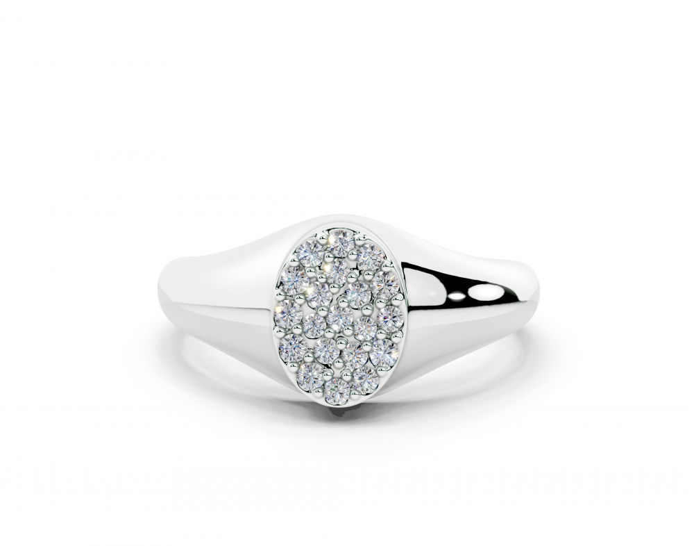 Inel din aur alb de 14K, cu diamante rotunde de 0.14ct. Greutatea inelului este de 3.73 grame.