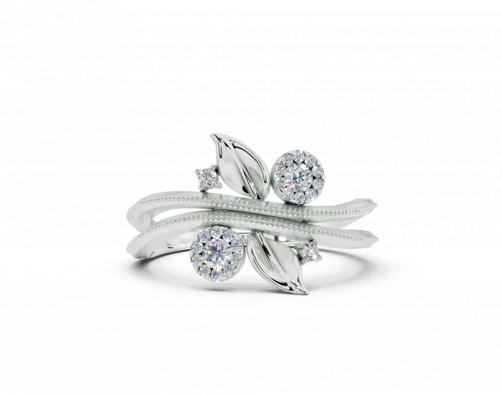 Inel din aur alb de 14K, cu diamante rotunde de 0.16ct. Greutatea inelului este de aproximativ 3.00 grame.
