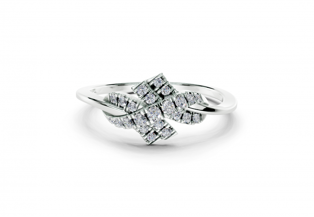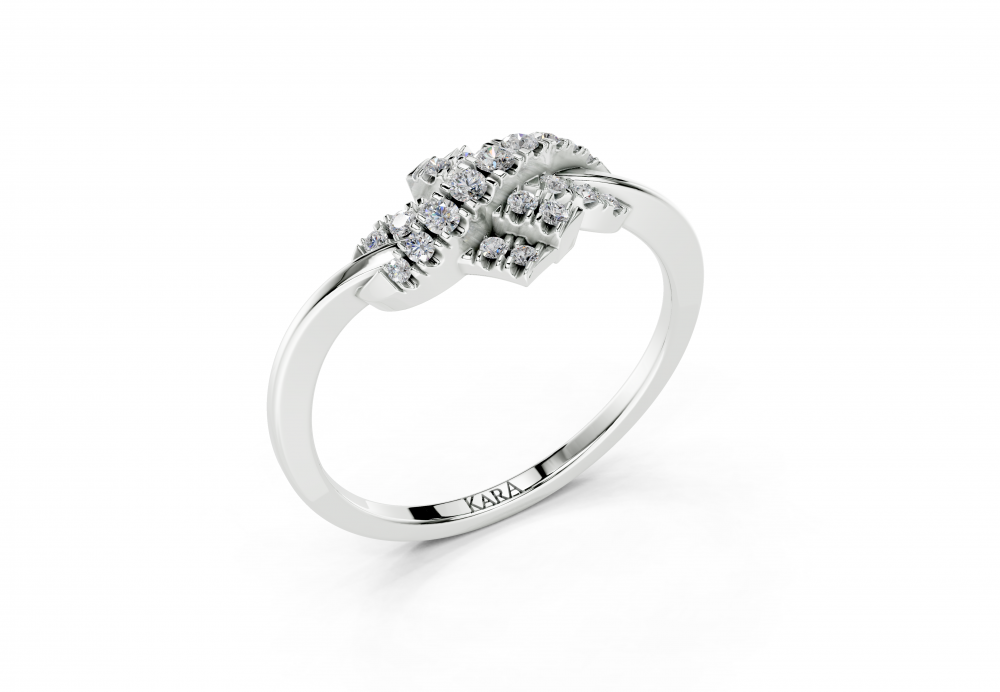 Inel din aur alb de 14K, cu diamante rotunde de 0.16ct. Greutatea inelului este de aproximativ 2 grame.