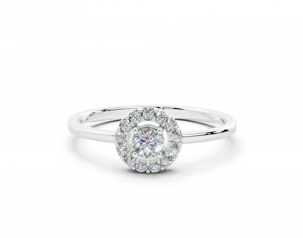 Inel din aur alb de 14K, cu diamante rotunde de 0.19 ct. Greutatea inelului este de 1.84 grame.