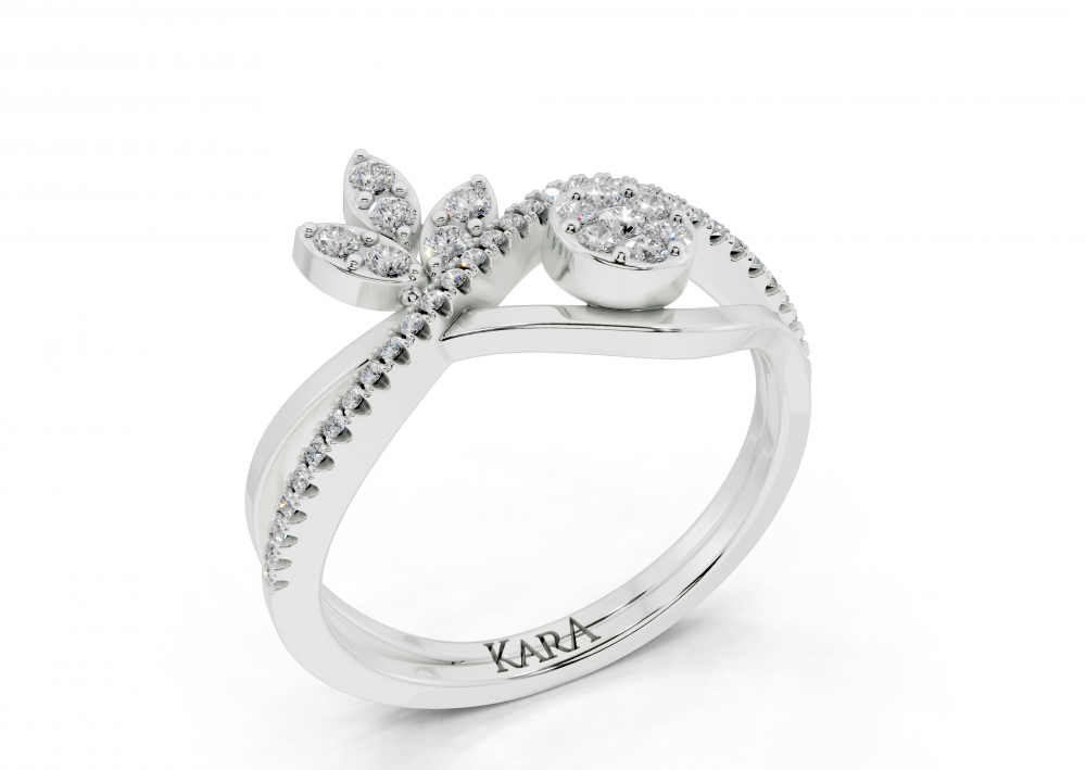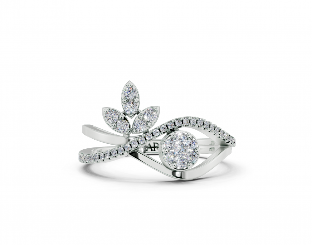 Inel din aur alb de 14K, cu diamante rotunde de 0.21ct. Greutatea inelului este de aproximativ 2.50 grame.