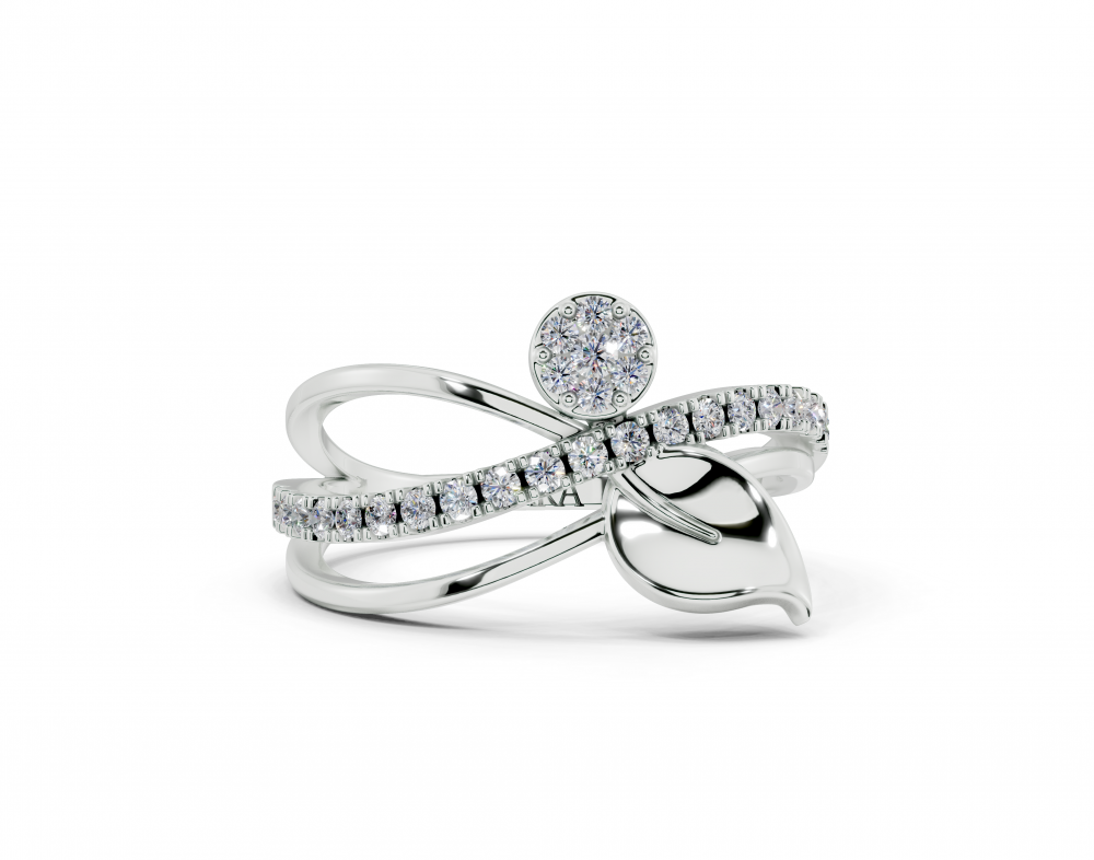 Inel din aur alb de 14K, cu diamante rotunde de 0.22ct. Greutatea inelului este de aproximativ 3.20 grame.