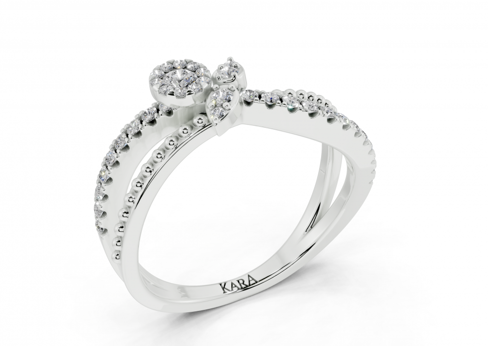 Inel din aur alb de 14K, cu diamante rotunde de 0.24ct. Greutatea inelului este de aproximativ 3.00 grame.