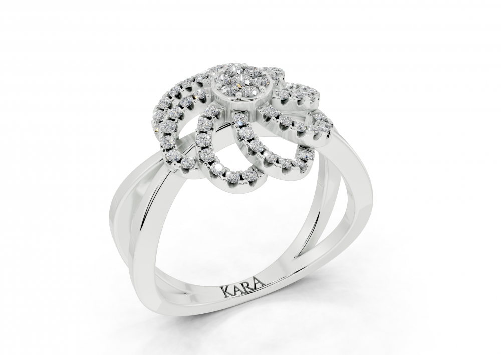 Inel din aur alb de 14K, cu diamante rotunde de 0.27ct. Greutatea inelului este de aproximativ 4.00 grame.