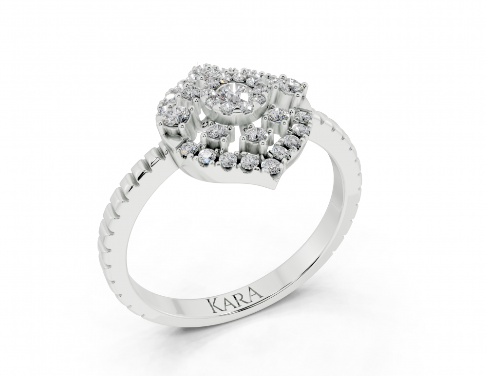 Inel din aur alb de 14K, cu diamante rotunde de 0.27ct. Greutatea inelului este de aproximativ 3 grame.