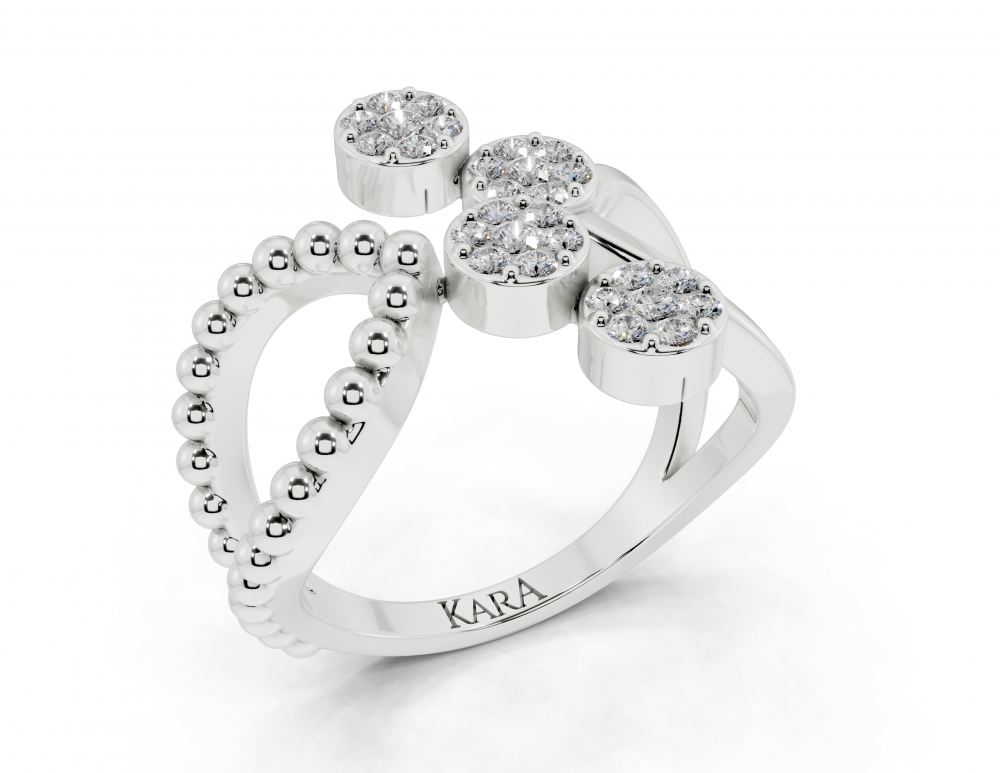 Inel din aur alb de 14K, cu diamante rotunde de 0.28ct. Greutatea inelului este de aproximativ 4.50 grame.