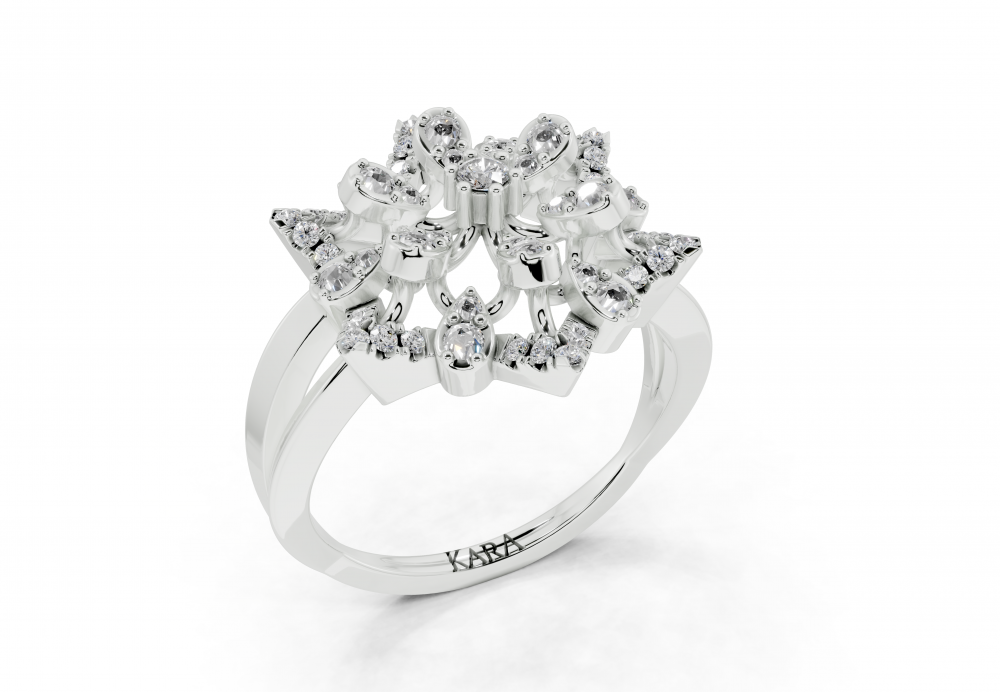 Inel din aur alb de 14K, cu diamante rotunde de 0.36t. Greutatea inelului este de aproximativ 4.50 grame. Inelul se poate face pe comanda si din aur de 18K. Putem modifica design-ul in functie de bugetul dumneavoastra.