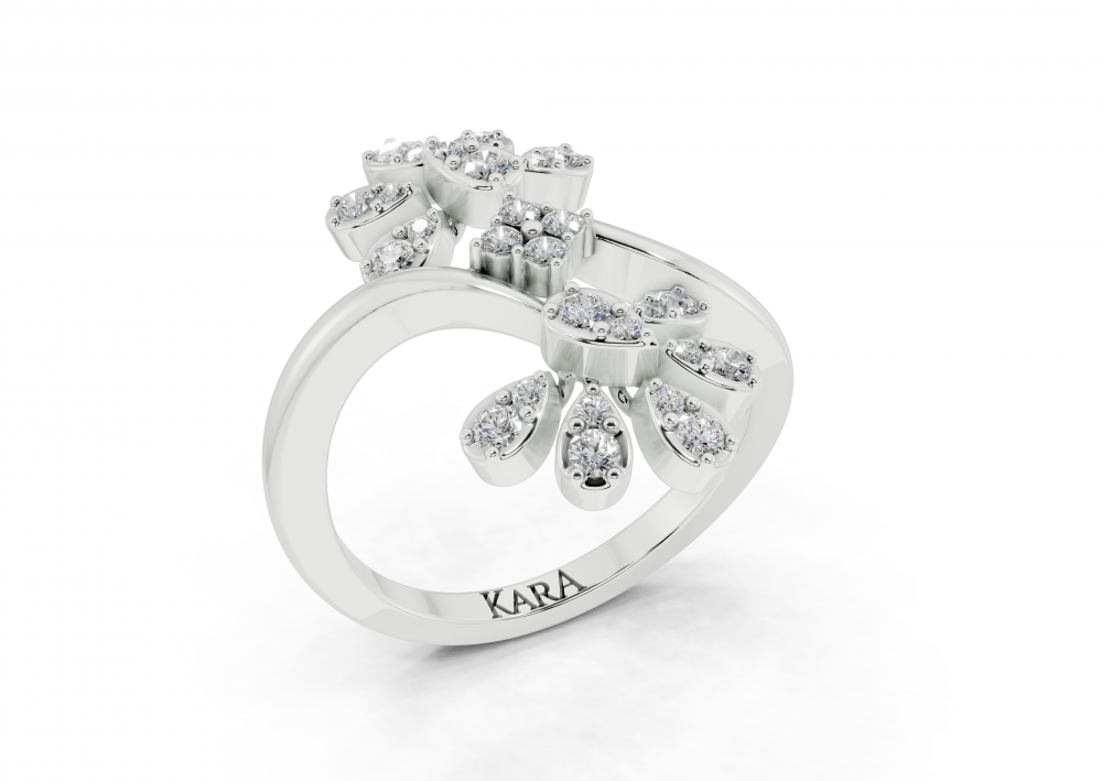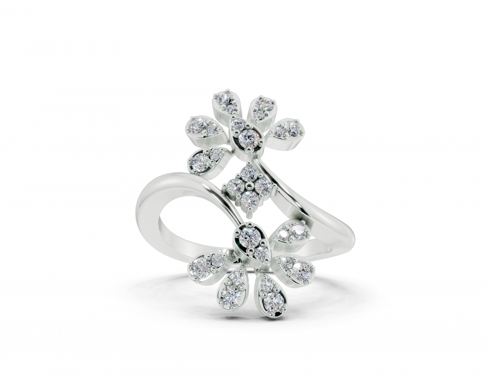 Inel din aur alb de 14K, cu diamante rotunde de 0.38ct. Greutatea inelului este de aproximativ 3.50 grame.