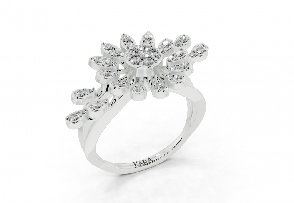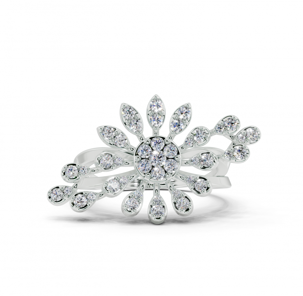Inel din aur alb de 14K, cu diamante rotunde de 0.44ct. Greutatea inelului este de aproximativ 4.50 grame.