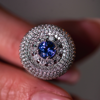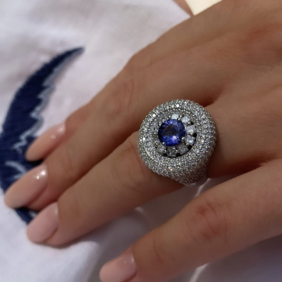 Inel din aur alb de 14K, cu diamante de 0.46 ct si safir de 0.86 ct. Greutatea inelului este de 3.91 grame.