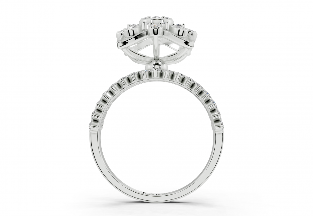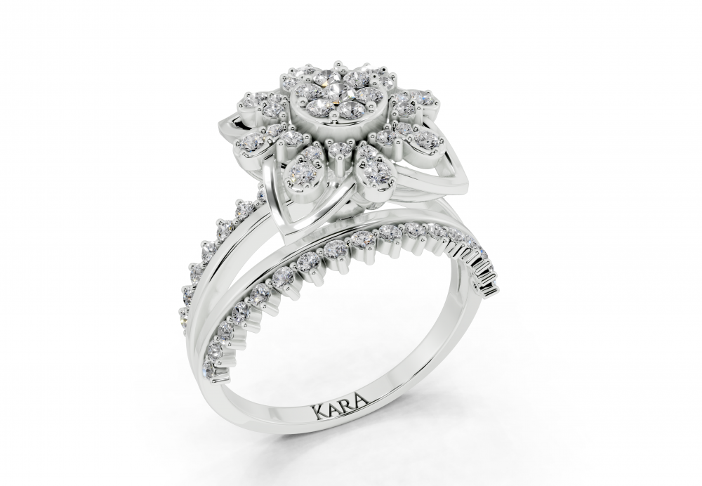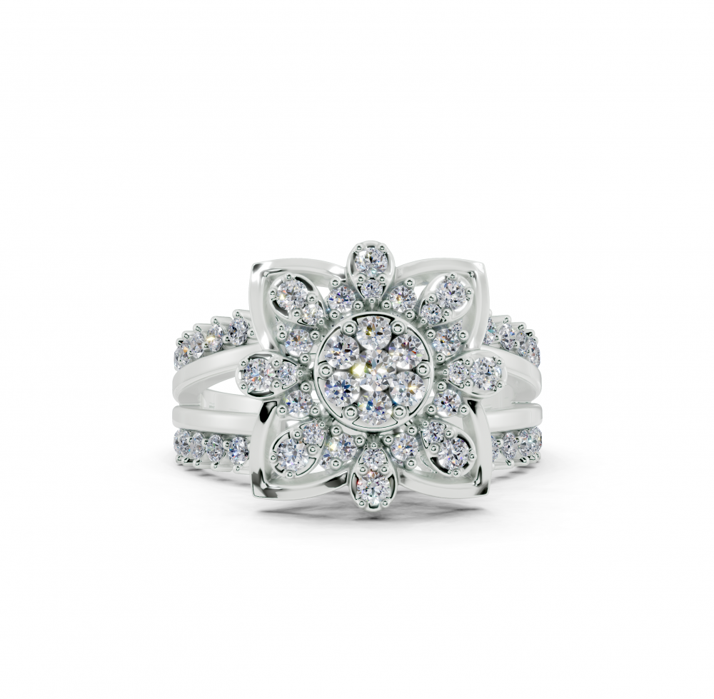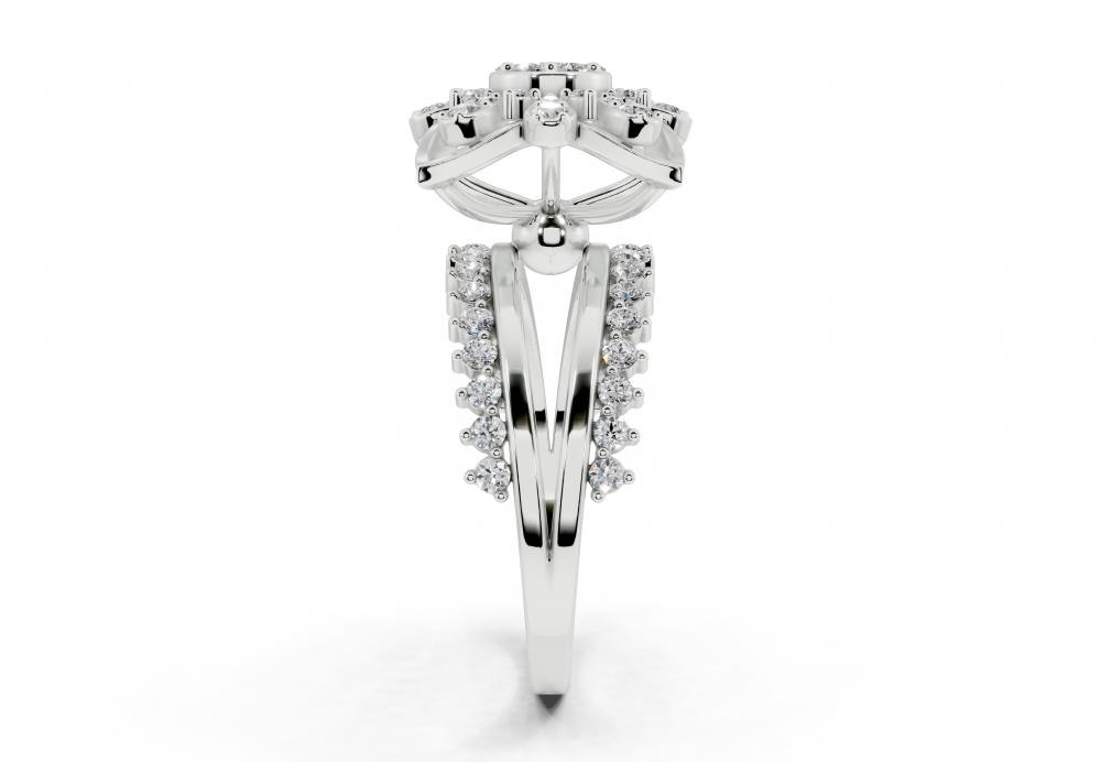 Inel din aur alb de 14K, cu diamante rotunde de 0.64ct. Greutatea inelului este de aproximativ 5.00 grame. Inelul se poate face pe comanda si din aur de 18K. Putem modifica design-ul in functie de bugetul dumneavoastra.