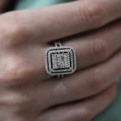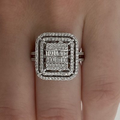 Inel de logodna cu diamante din aur alb de 14 K, cu diamante de 0.83 ct. Greutatea inelului este de 3.48 grame. Inelul se poate face pe comanda si din aur de 18K. Putem modifica design-ul in functie de bugetul dumneavoastra. Putem alege caracteristicile diamantelor (taietura, culoarea,...