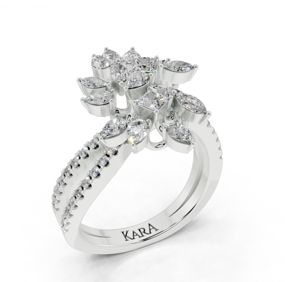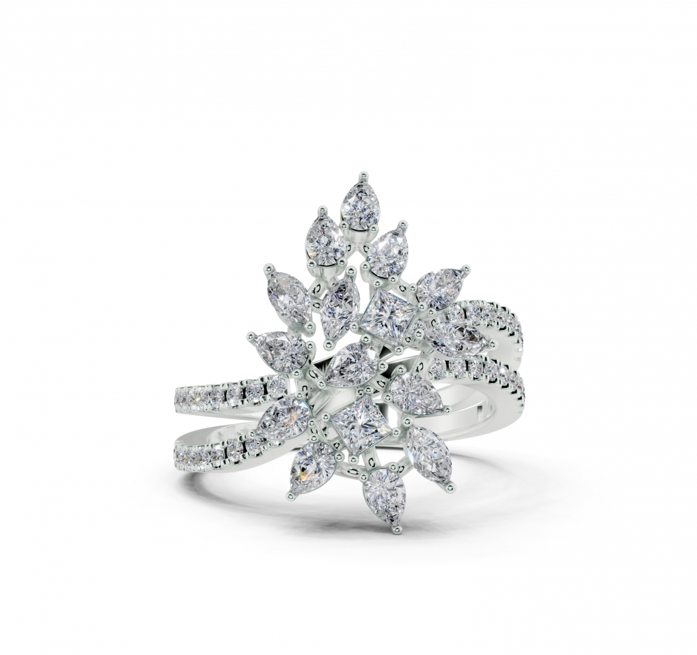 Inel din aur alb de 14K, cu diamante Pear Cut de 0.52ct, diamante Princess Cut de 0.17ct, diamante Marquise Cut de 0.15ct si diamante rotunde de 0.25ct. Greutatea inelului este de aproximativ 2.00 grame. Inelul se poate face pe comanda si din aur de 18K. Putem modifica design-ul in functie de bugetul dumneavoastra.