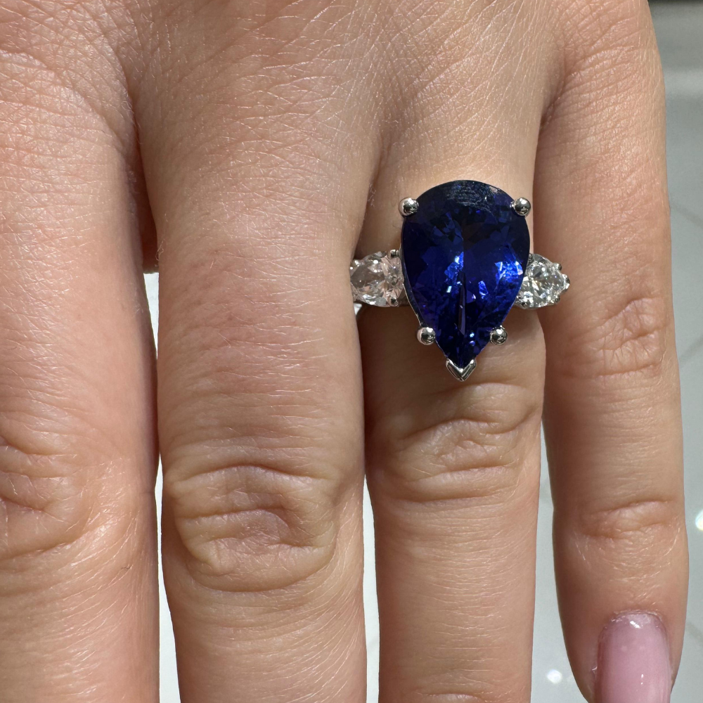 Inel din aur alb de 14K, cu diamante de 1.17 ct, Diamante Princess de 1.01 ct si Tanzanite IGSL  de 6.24 ct.. Greutatea inelului este de 6.39 grame.