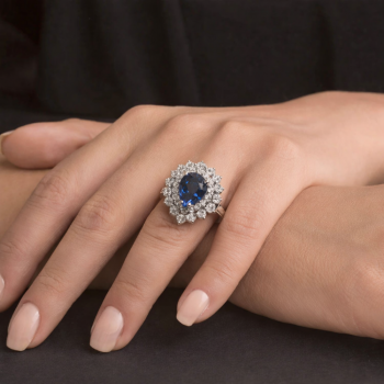 Inel din aur alb de 14K, cu diamante de 1.38 ct si Safir de 1.86 ct. Greutatea inelului este de 5.06 grame.
