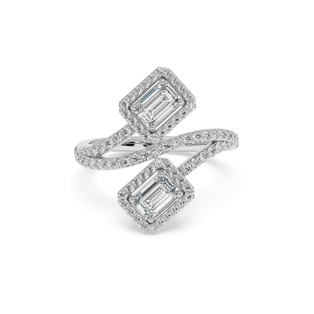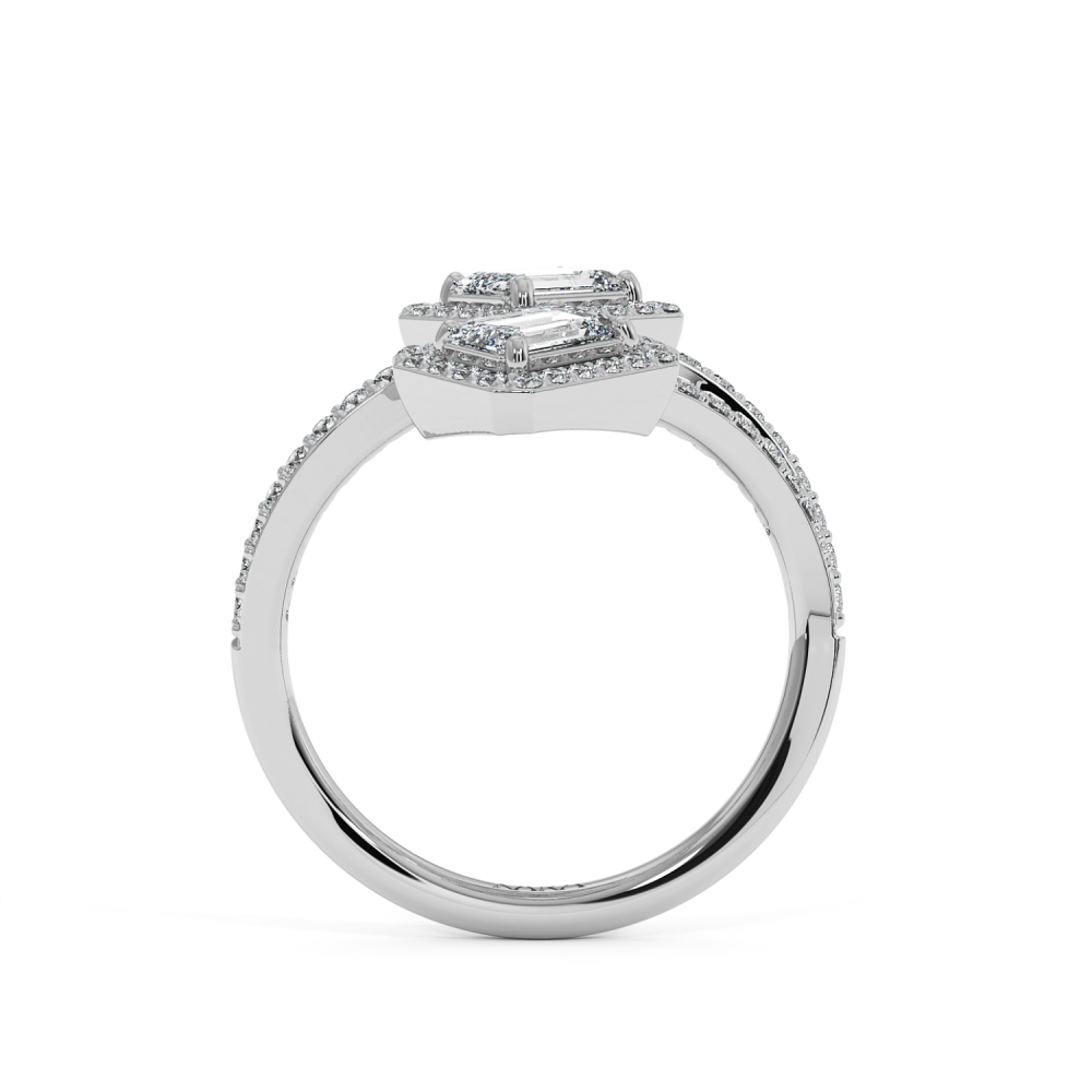 Inel cu Diamante Emerald Cut de 0.92ct si Diamante Rotunde de 0.49ct